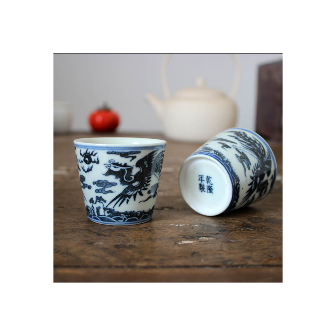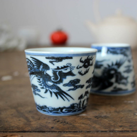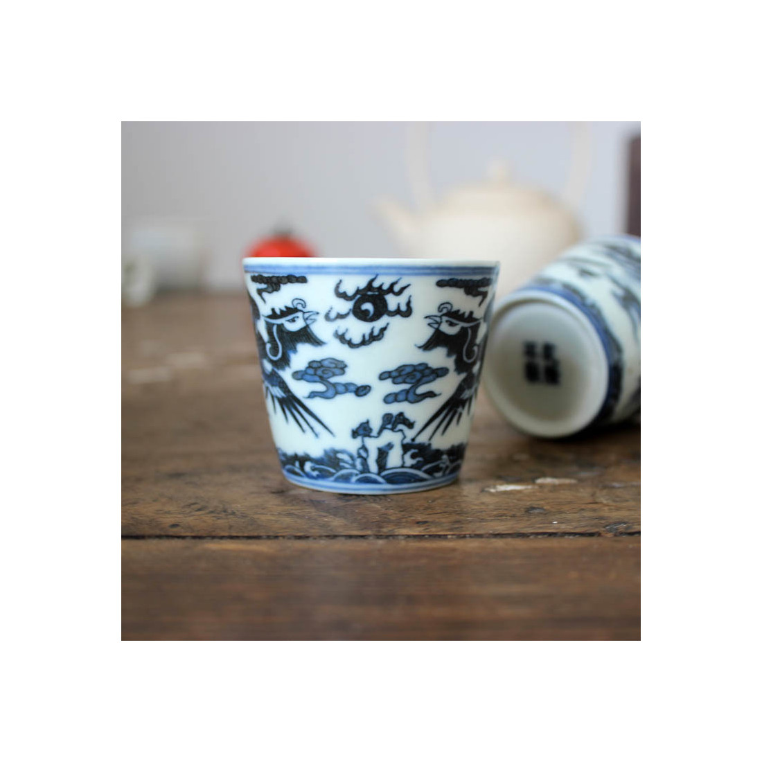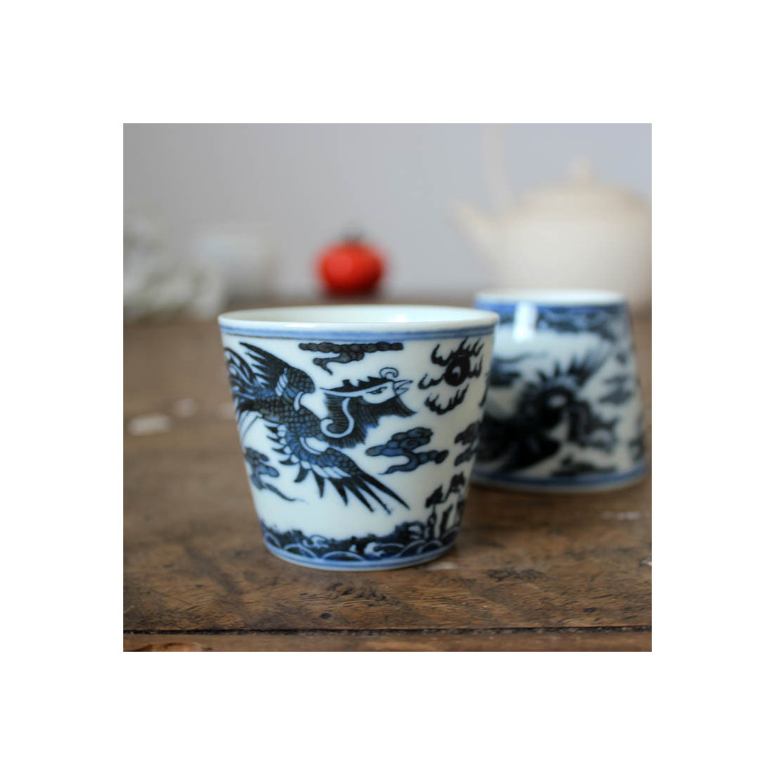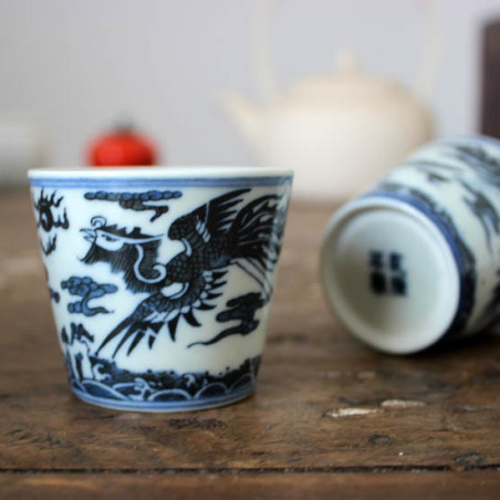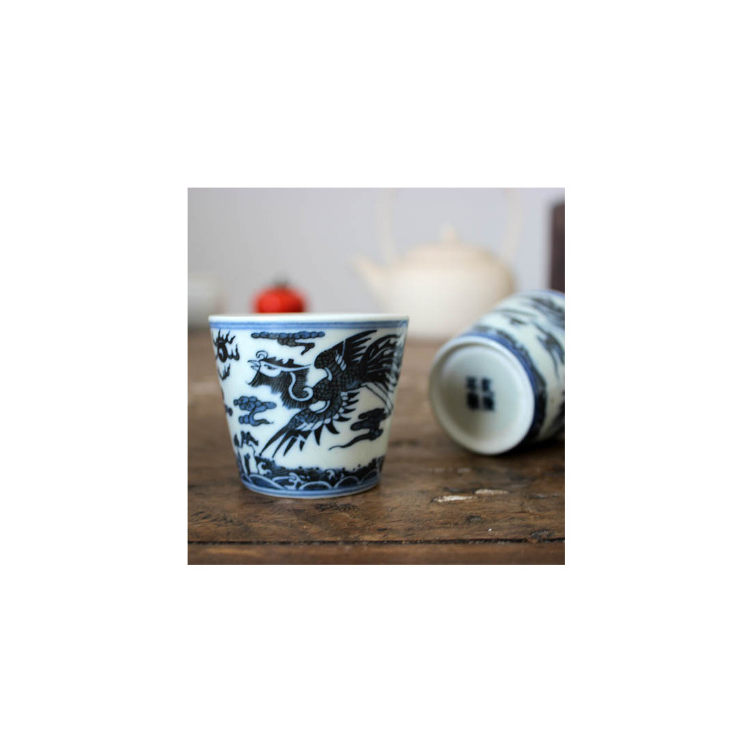 На цій чаші зображено два фенікси. Це зображення має різне трактування, два найпоширеніших із них: (1) у китайській літературі "парою феніксів" називають співдружність двох талановитих людей, (2) один фенікс знаменує щастя, а два фенікси - подвійне щастя.