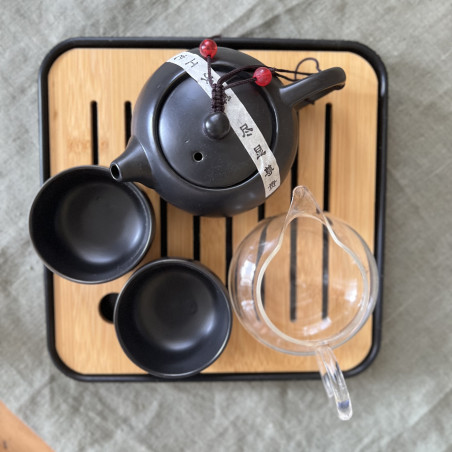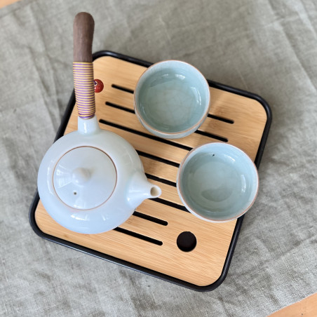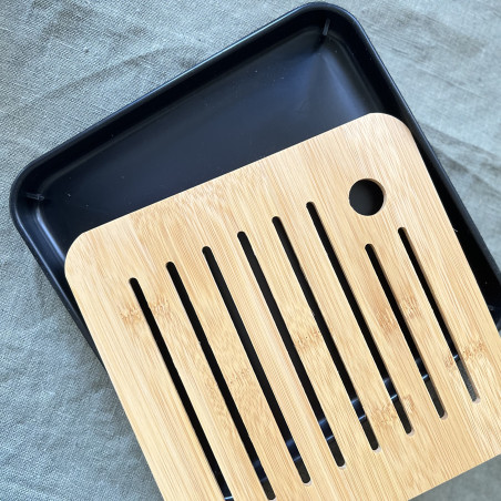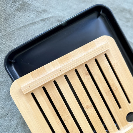 Маленька чабань із чорною пластиковою основою. Верхня решітка з бамбука.