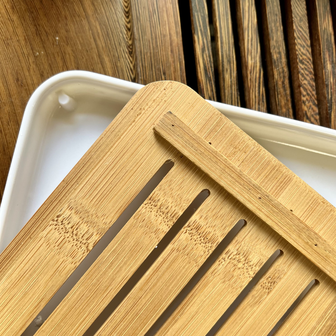 Маленька чабань з білою пластиковою основою. Верхня решітка з бамбука.