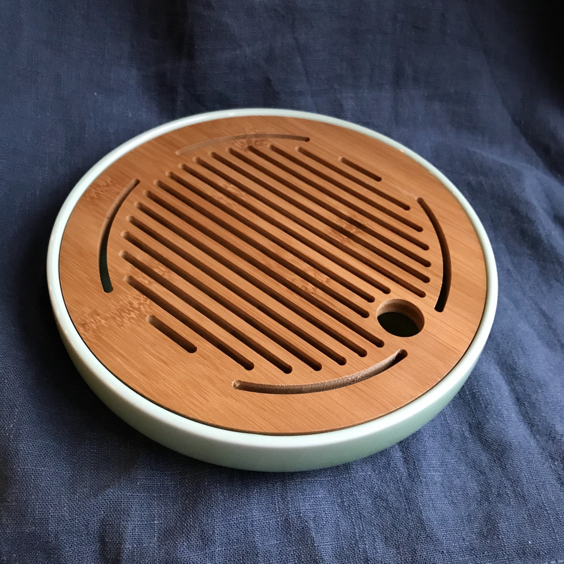 Кругла чабань із селадоновою керамічною основою. Ґрати з бамбука.