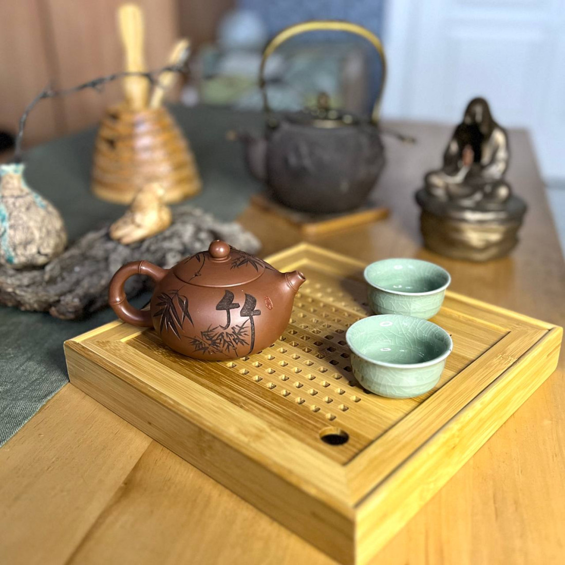 Чабань дуже зручна для домашнього чаювання. По-перше, на ній можна розмістити достатньо посуду. По-друге, вона не займає багато місця, її навіть можна поставити боком на полицю.
