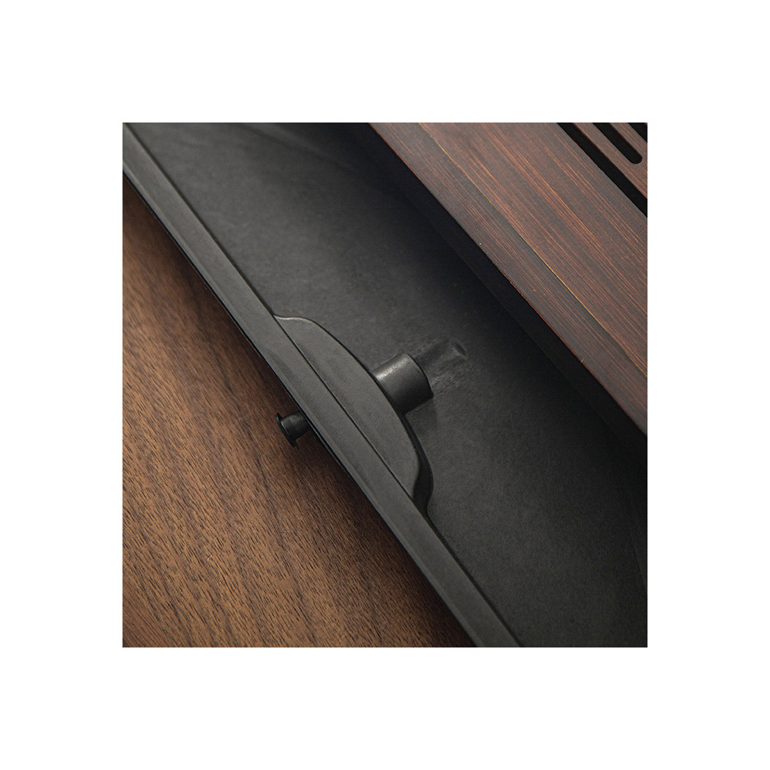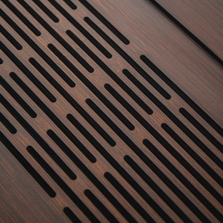 Чабань із щільного бамбука, пофарбованого у темно-коричневий колір під горіхове дерево. Покриття можна назвати глянцевим, але блищить не сильно, виглядає стильно з порцеляною та посудом із класичними глазурями. З одного боку, чабань невелика і зручно використовувати вдома, з іншого — не займає багато місця. Легка — можна брати з собою на виїзд.