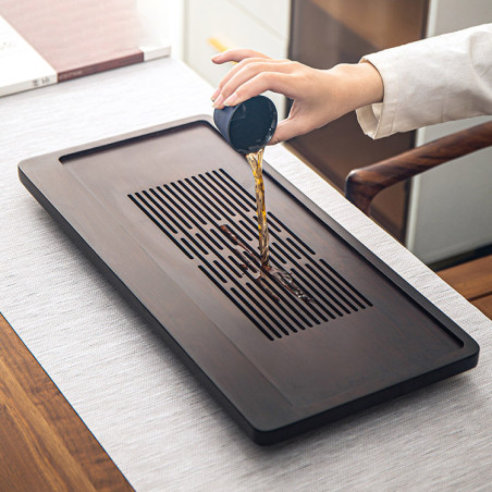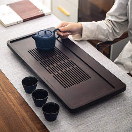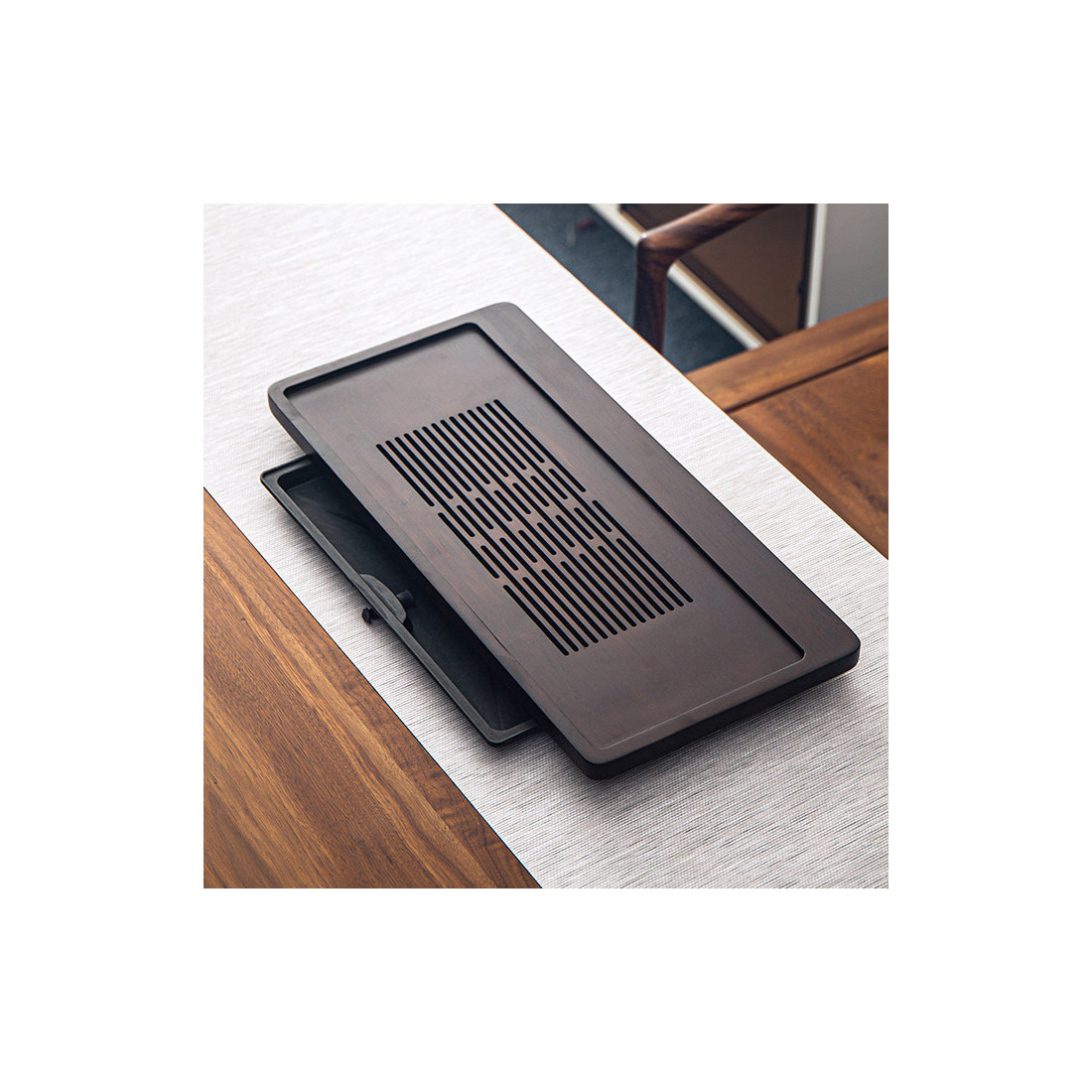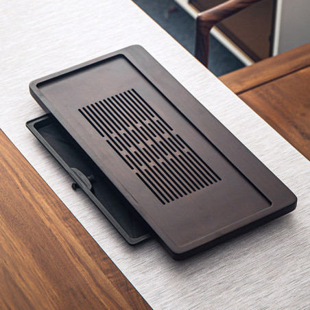 Усередині висувний піддон із чорного пластику та трубка для відведення води за потреби. Піддон не глибокий (600 мл), що дозволило зробити чабань компактним, але бажано виливати з нього воду після кожного чаювання.