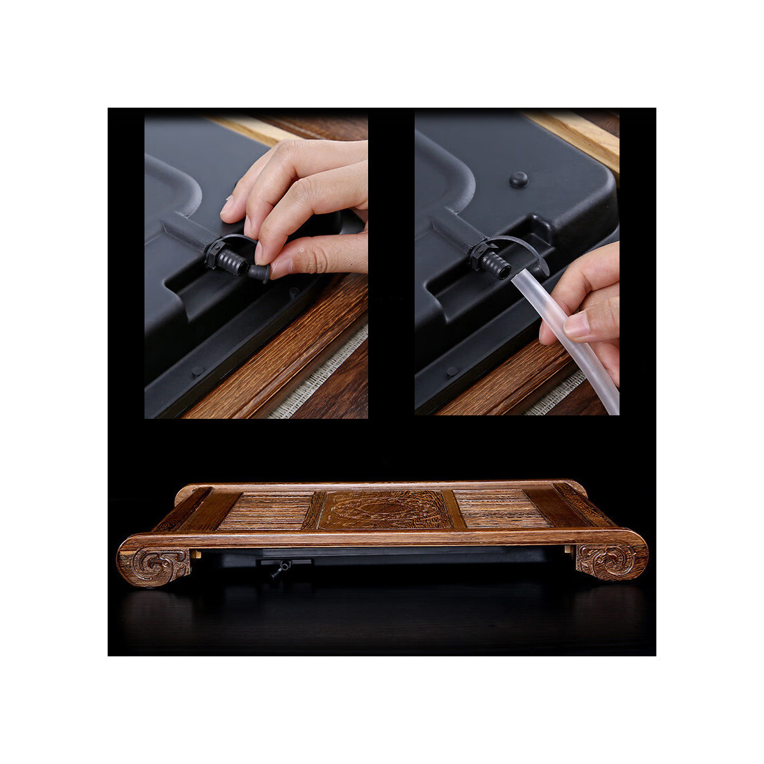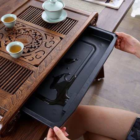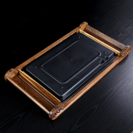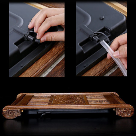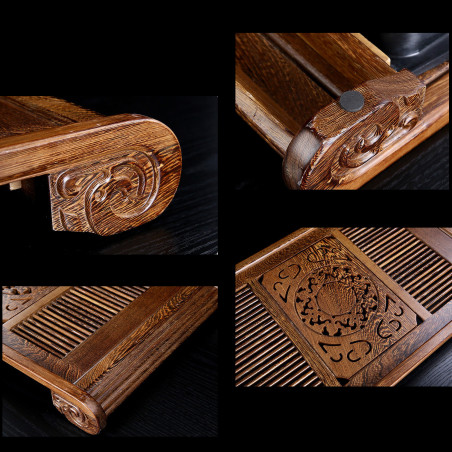 Чабань виготовлена з дерева венге з ефектом "пташине крило" — природні прожилки деревини створюють декоративний візерунок. Усередині висувний піддон із чорного пластику, при необхідності можемо додати трубку для відведення води (напишіть у коментарях до замовлення).