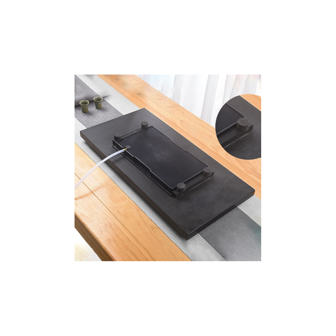 У комплекті з чабанню йдуть: 4 ніжки (власник кріпить так, як вважає найбільш зручним), рушник, трубка для зливу води, скребок для поверхні та бамбукові щипці.