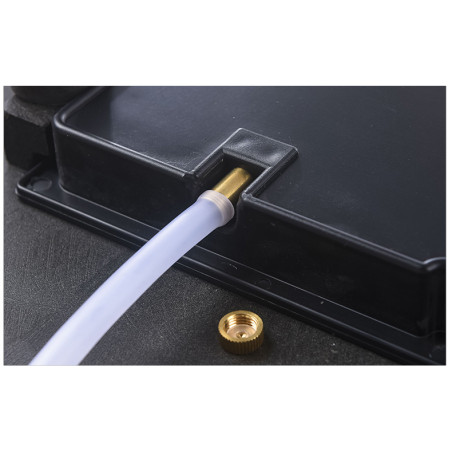 Модель з висувним піддоном, але можна приєднати трубку для зливу води. Верхня поверхня чабані зроблена з невеликим нахилом до центру, куди стікатиме вода, вилита на чабань, і йтиме через наскрізні отвори в піддон.