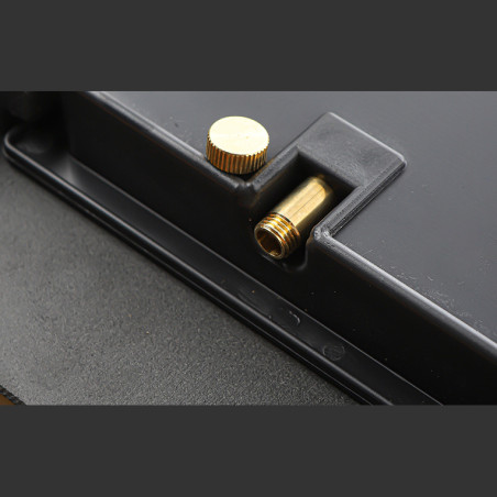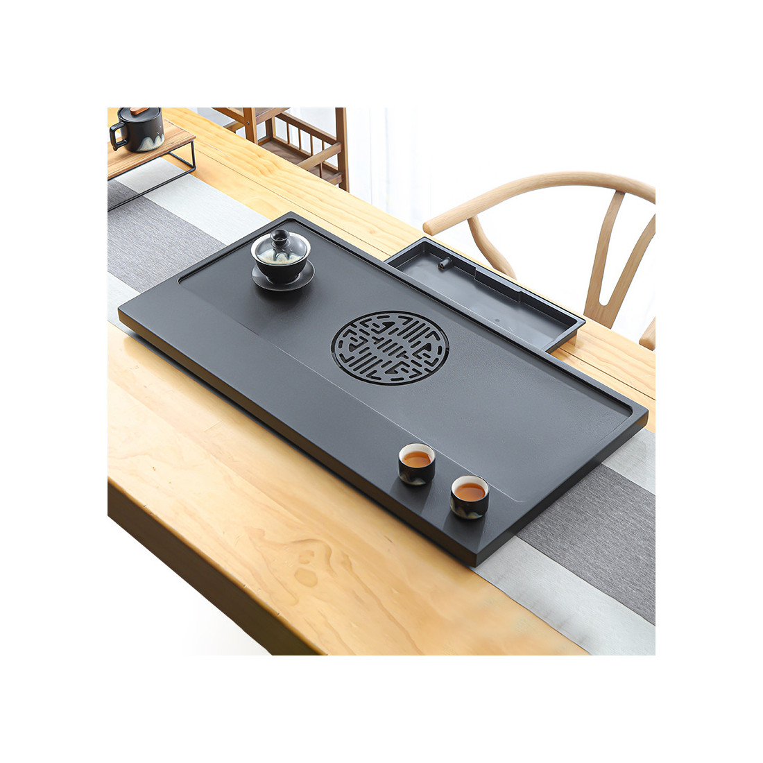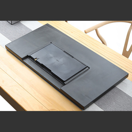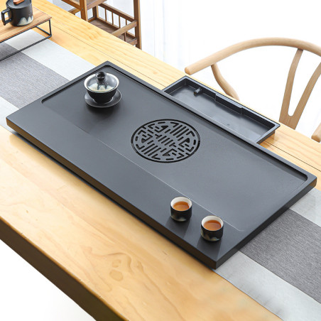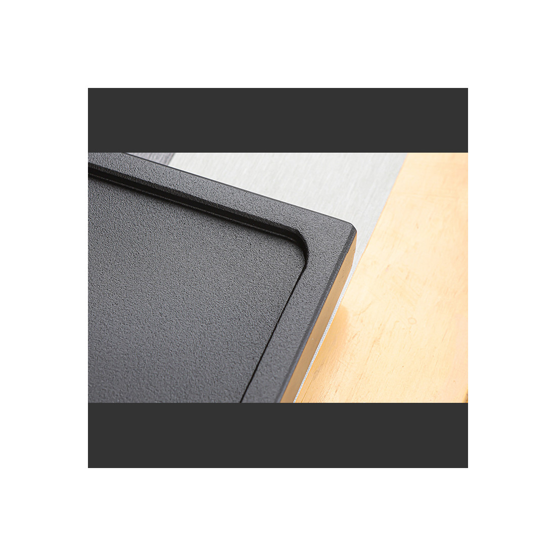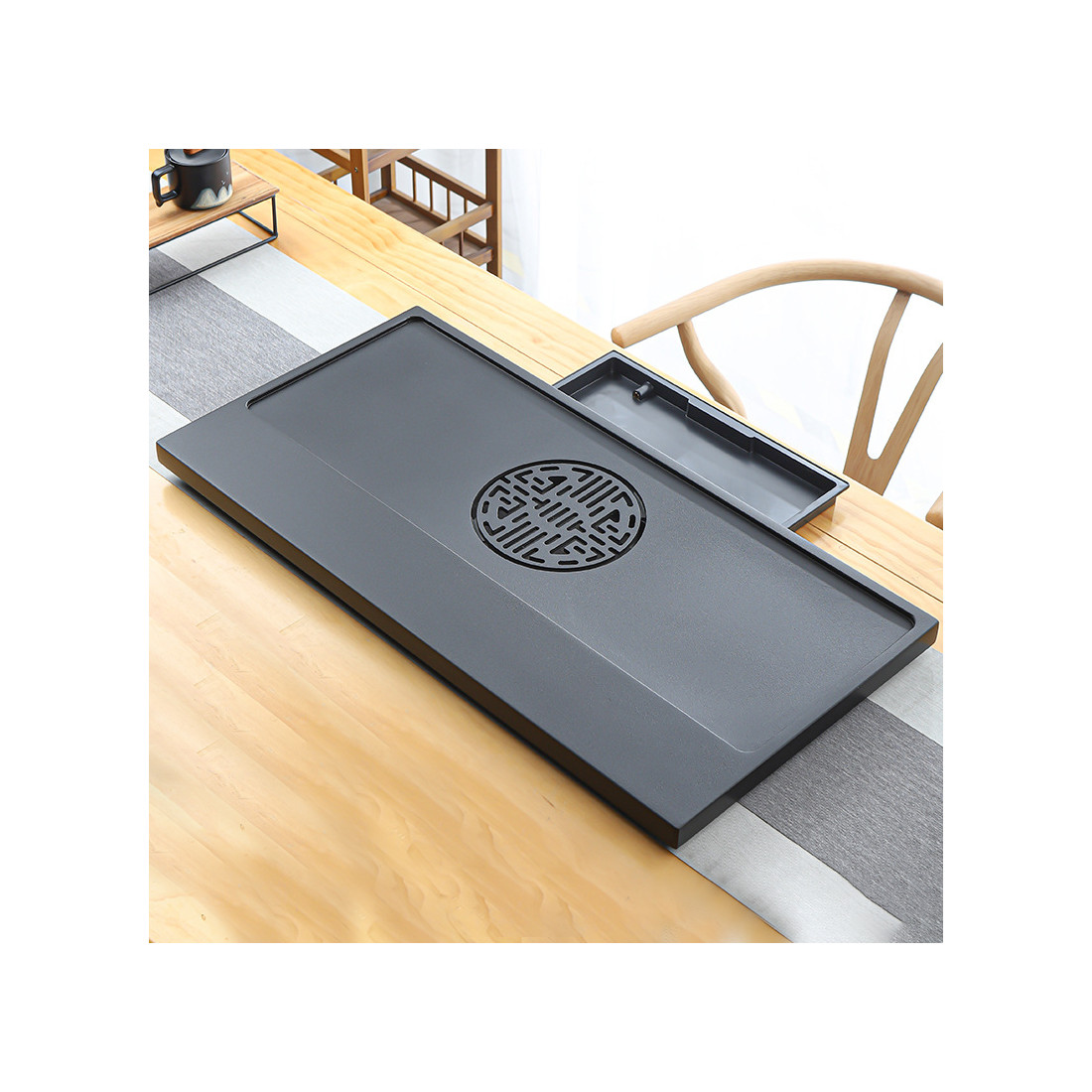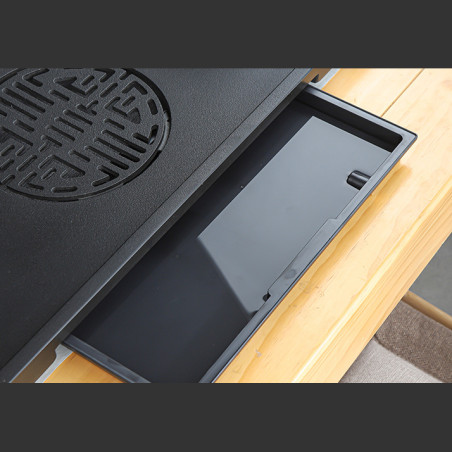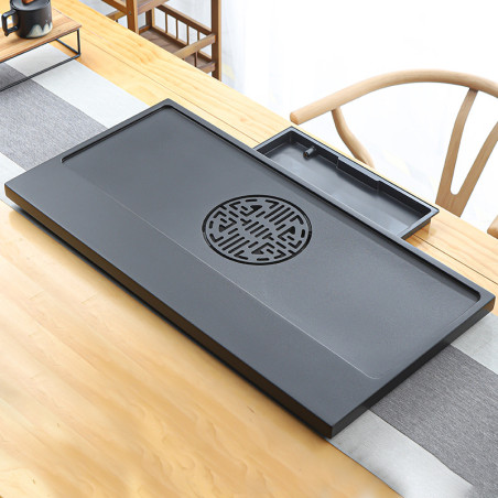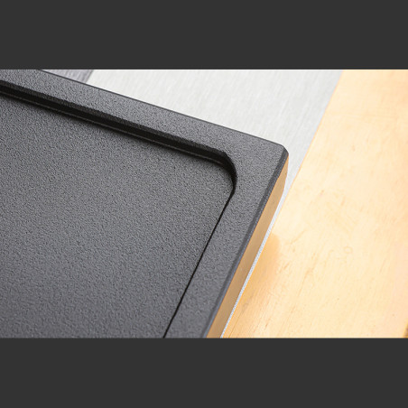 Модель із висувним піддоном, але можна приєднати трубку для зливу води. Верхня поверхня відшліфована, гладка. Спереду зроблений борт для розміщення чаш. Зайву воду під час заварювання варто зливати безпосередньо в отвори у центрі.