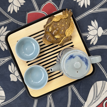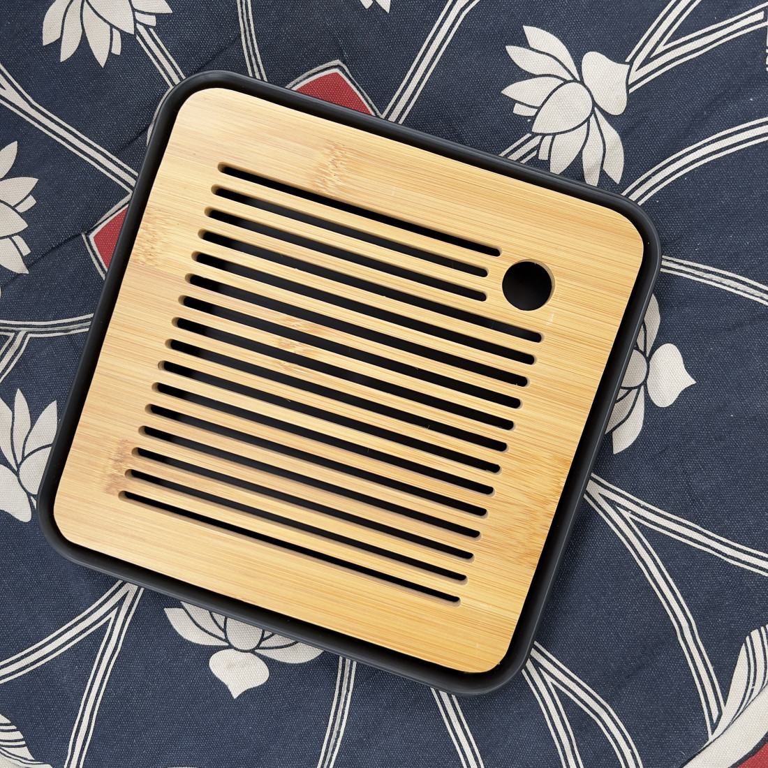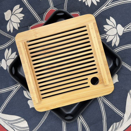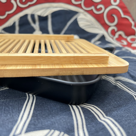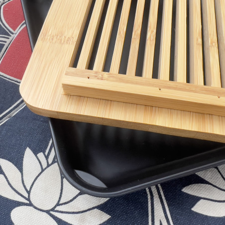 Маленька чабань із чорною пластиковою основою. Верхня решітка з бамбука більш товстіша, а піддон вищий, ніж у подібних моделях.