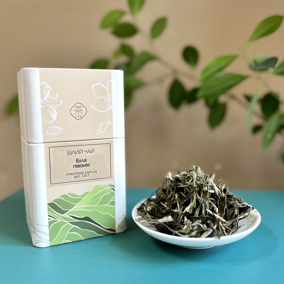 Про чай: Ніжний чай з ароматом квітів, різнотрав'я та легким відтінком меду. Зібраний у найкращий період — у квітні. Смак соковитий, об'ємний, але м'який. Чай із солодкістю, але в післясмаку залишається легка кислинка. Як завжди, "Біла півонія" такого рівня — дуже смачний і витончений, незрівнянний, вражаючий чай.