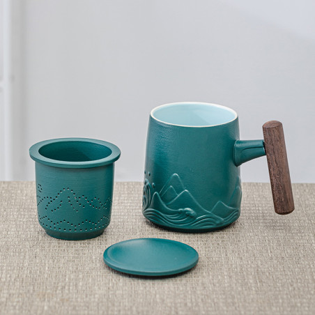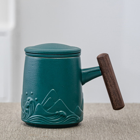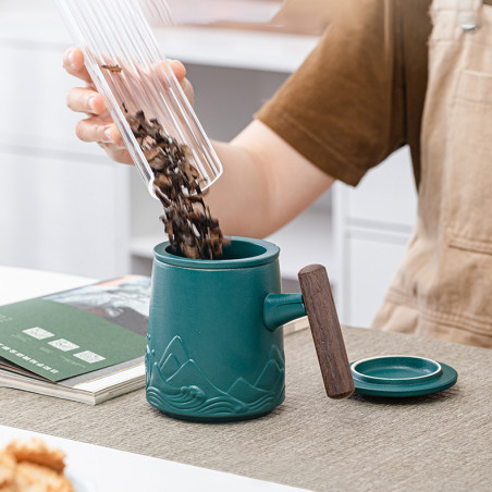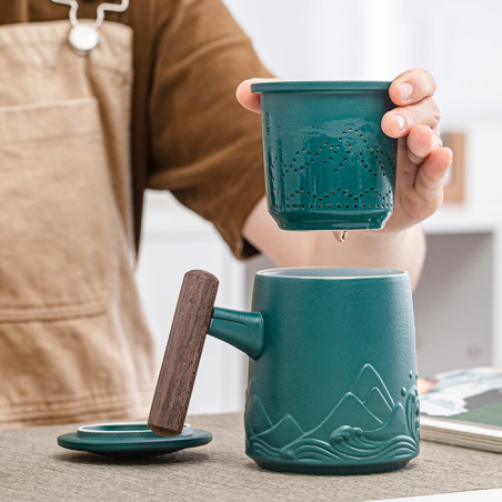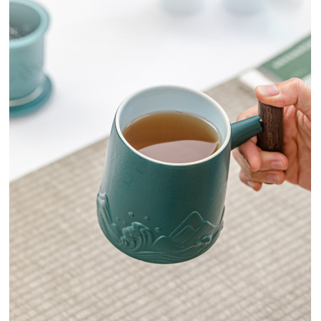 - Кружка з дерев'яною ручкою для заварювання чаю в офісі.