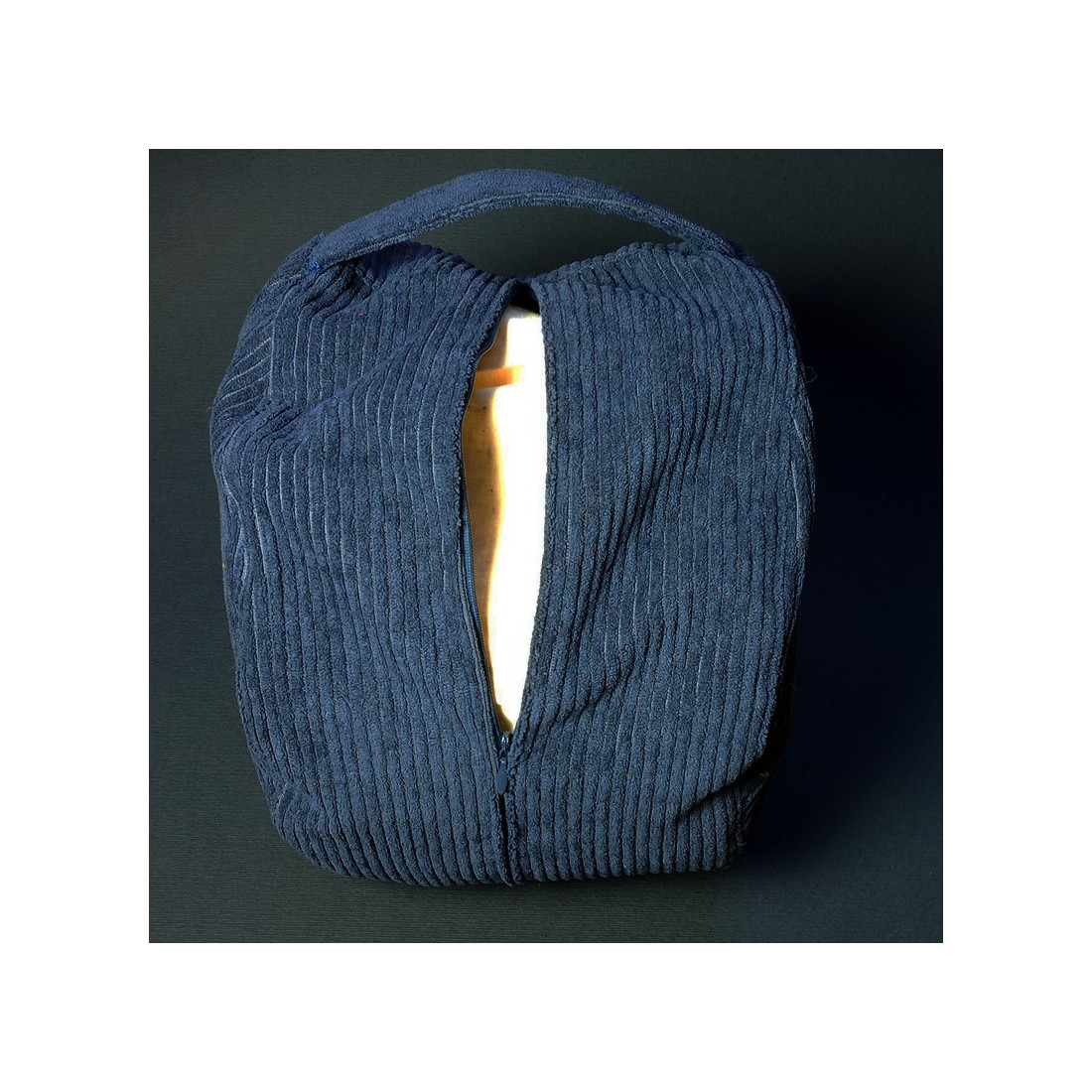 Подушка з синього вельвету з вшитою ручкою для перенесення. Складається із двох чохлів. Внутрішній чохол дозволить вам легко випрати верхню тканину.