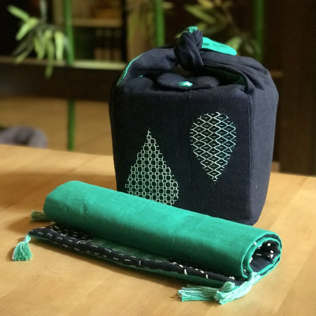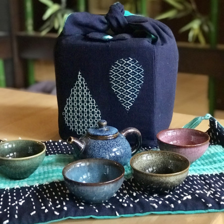 Travel tea-set "Дощ" виконаний у стилі японської вишивки sashiko&boro.