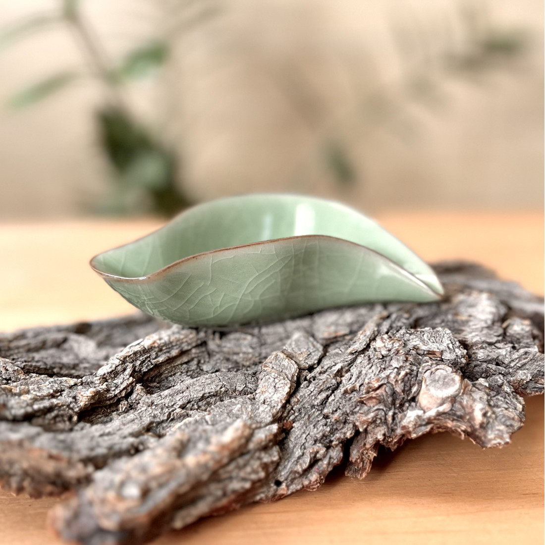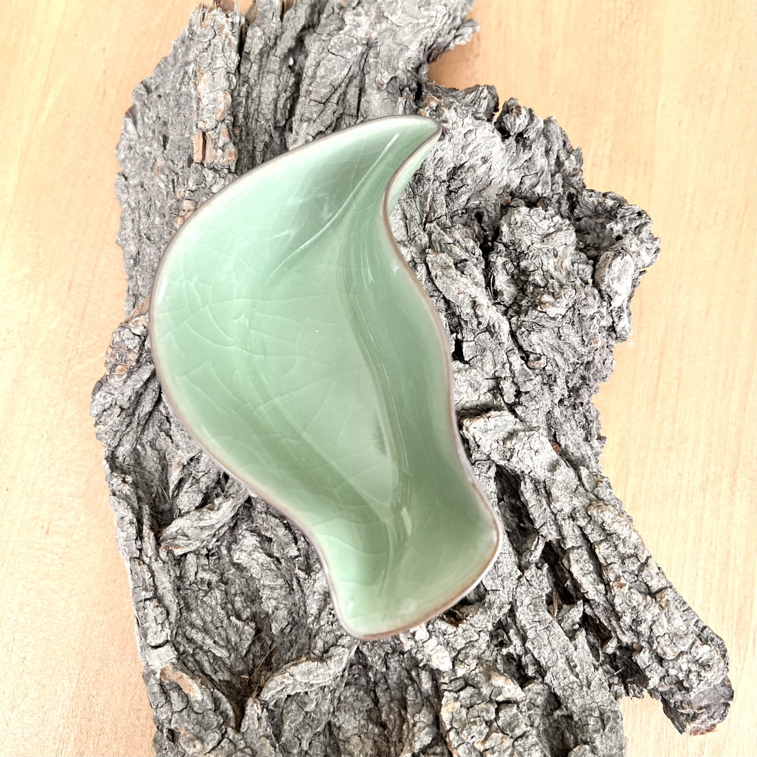Селадонове чахе середнього розміру у вигляді листа.