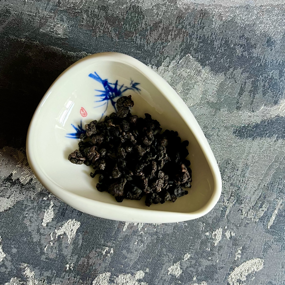 Біле чахе із синім бамбуком