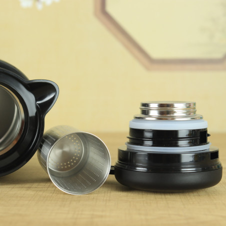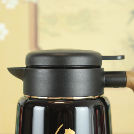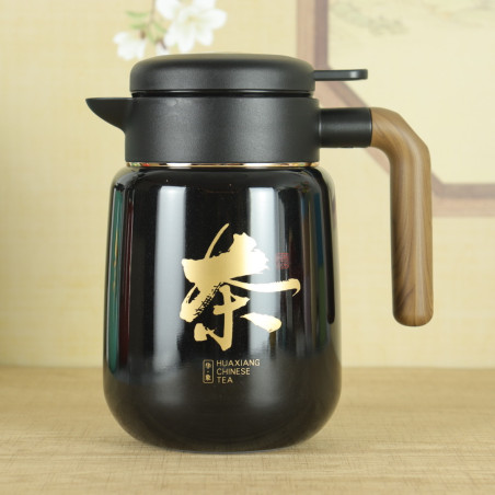 Маленький термос з ієрогліфом "Чай", чорний