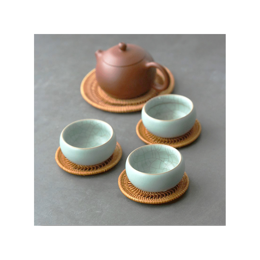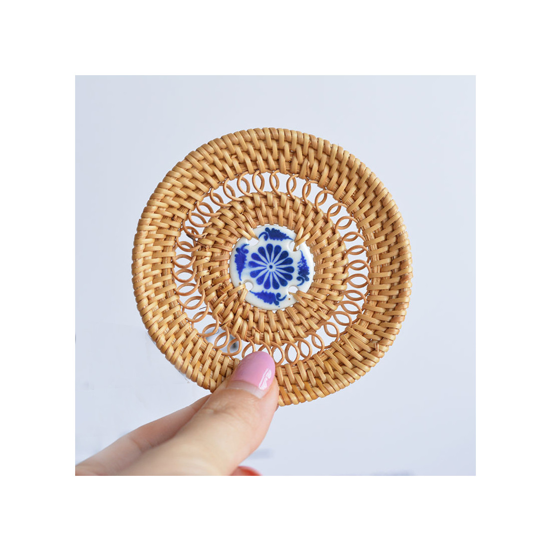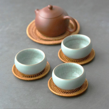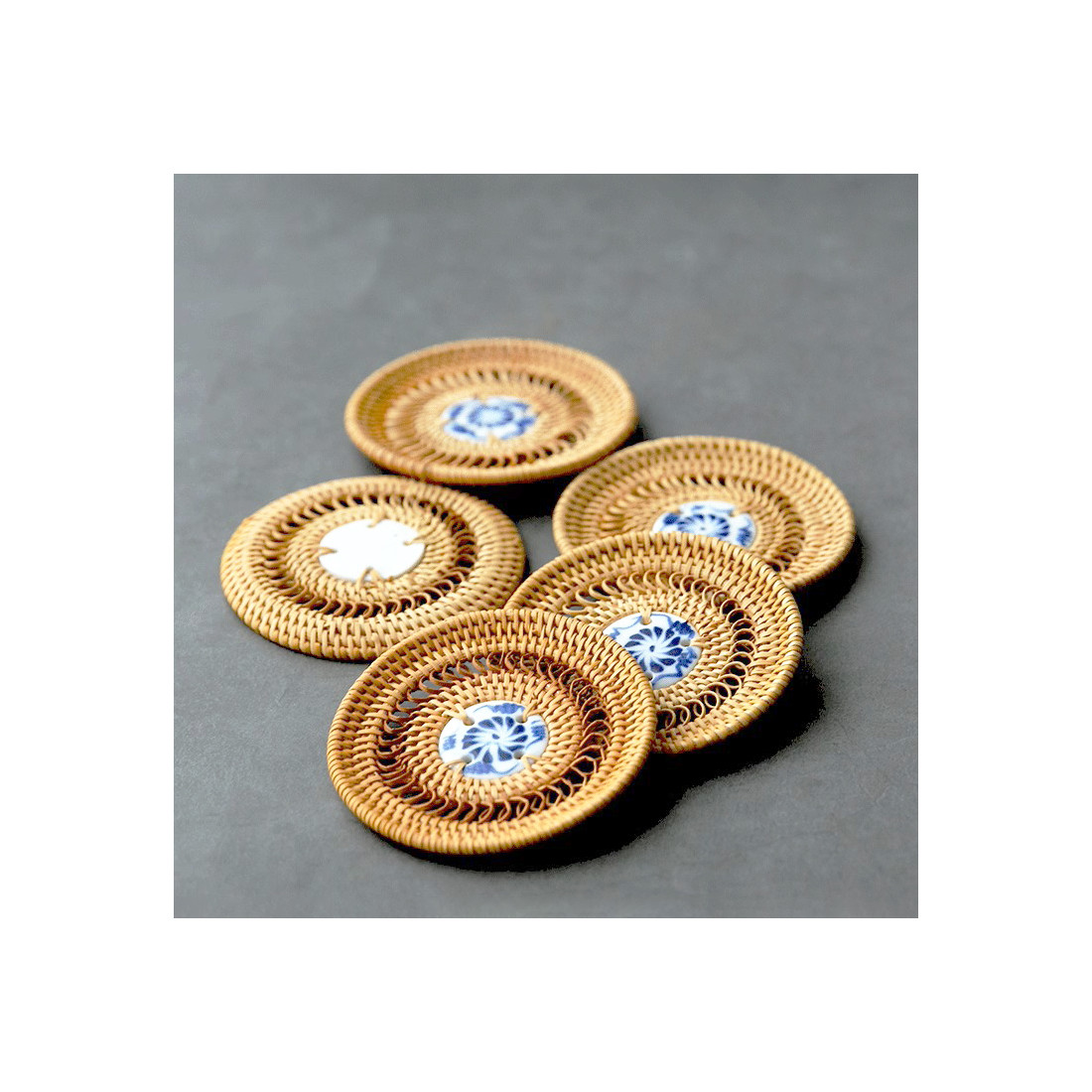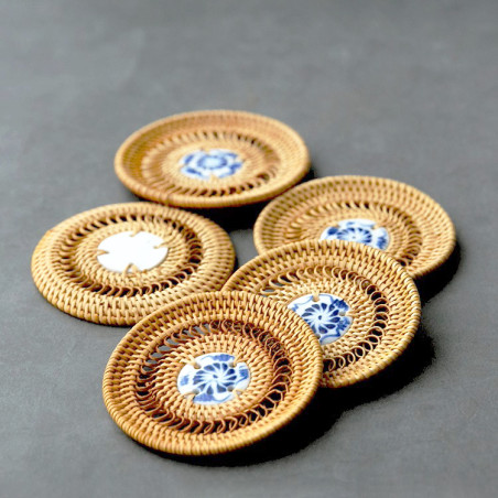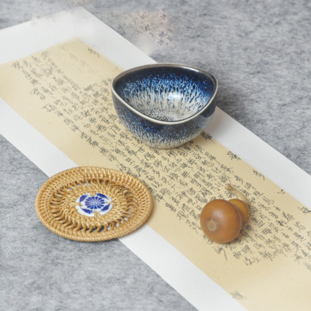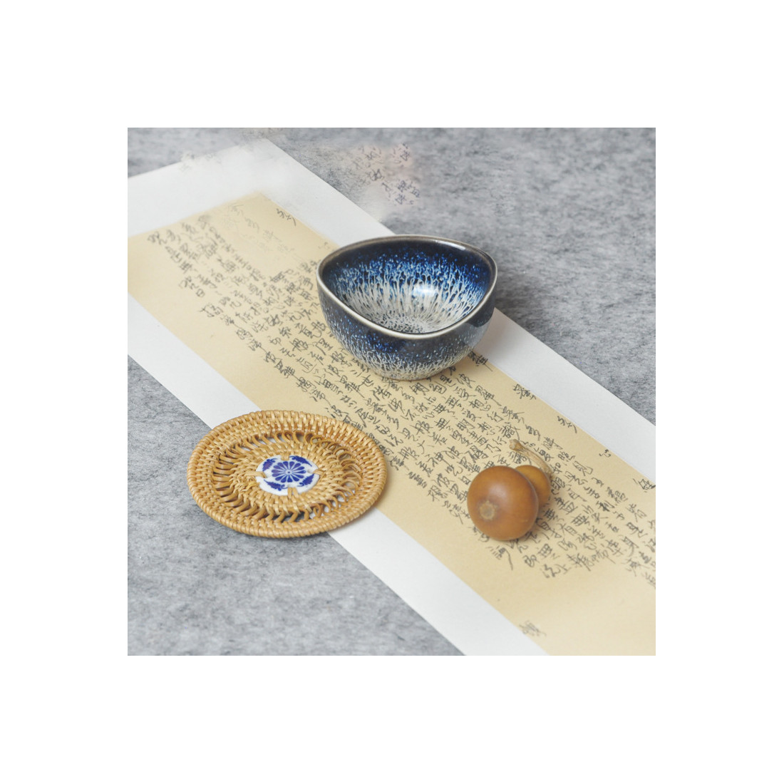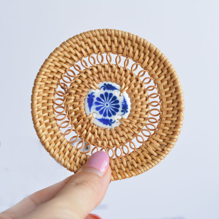 Підставка під китайські чаші, плетена з ротанга. Краї трохи загнуті вгору. Усередині вставка з порцеляни.