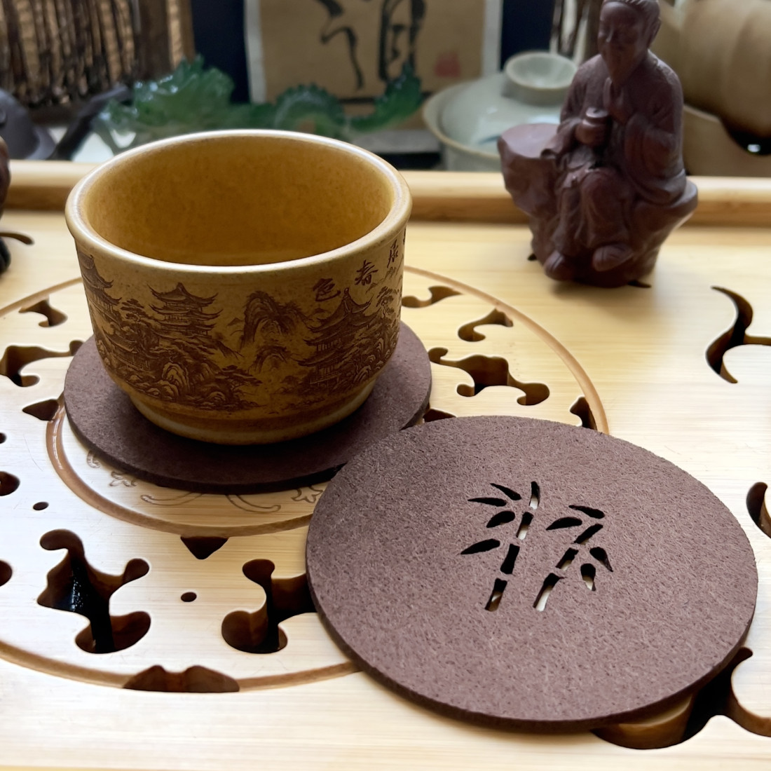 На підставці вирізане зображення бамбука.