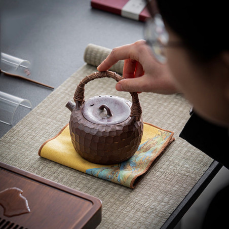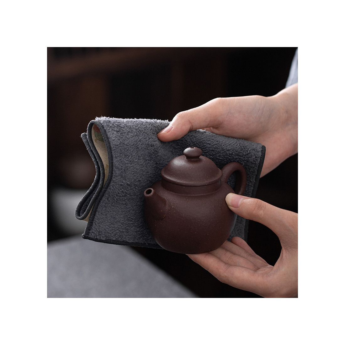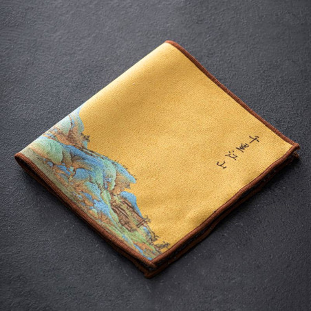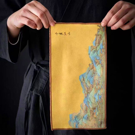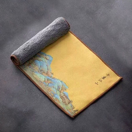 Невеликий двосторонній рушник-килимок. Насамперед — це рушник. З одного боку, репродукція картини "Гори та води на тисячу лі", з іншого боку — поверхня з довгим ворсом. Рушник добре вбирає воду, можна прати. При необхідності можна використовувати як невеликий килимок для чаювання.