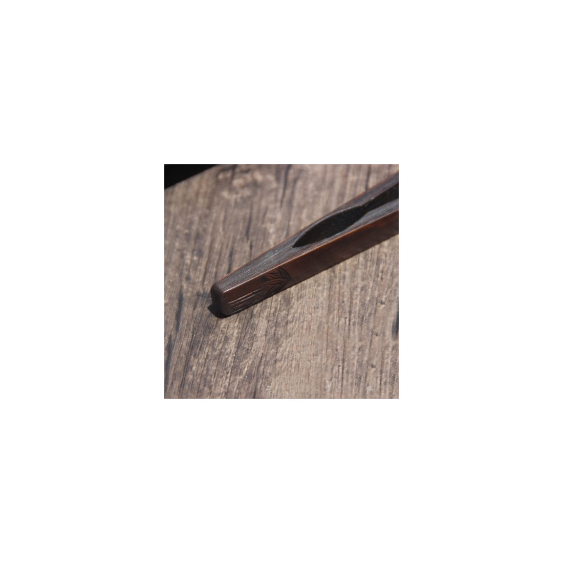 Інструменти виготовлені з натурального бамбука з покриттям чорним лаком. На щипцях вирізане зображення бамбука.