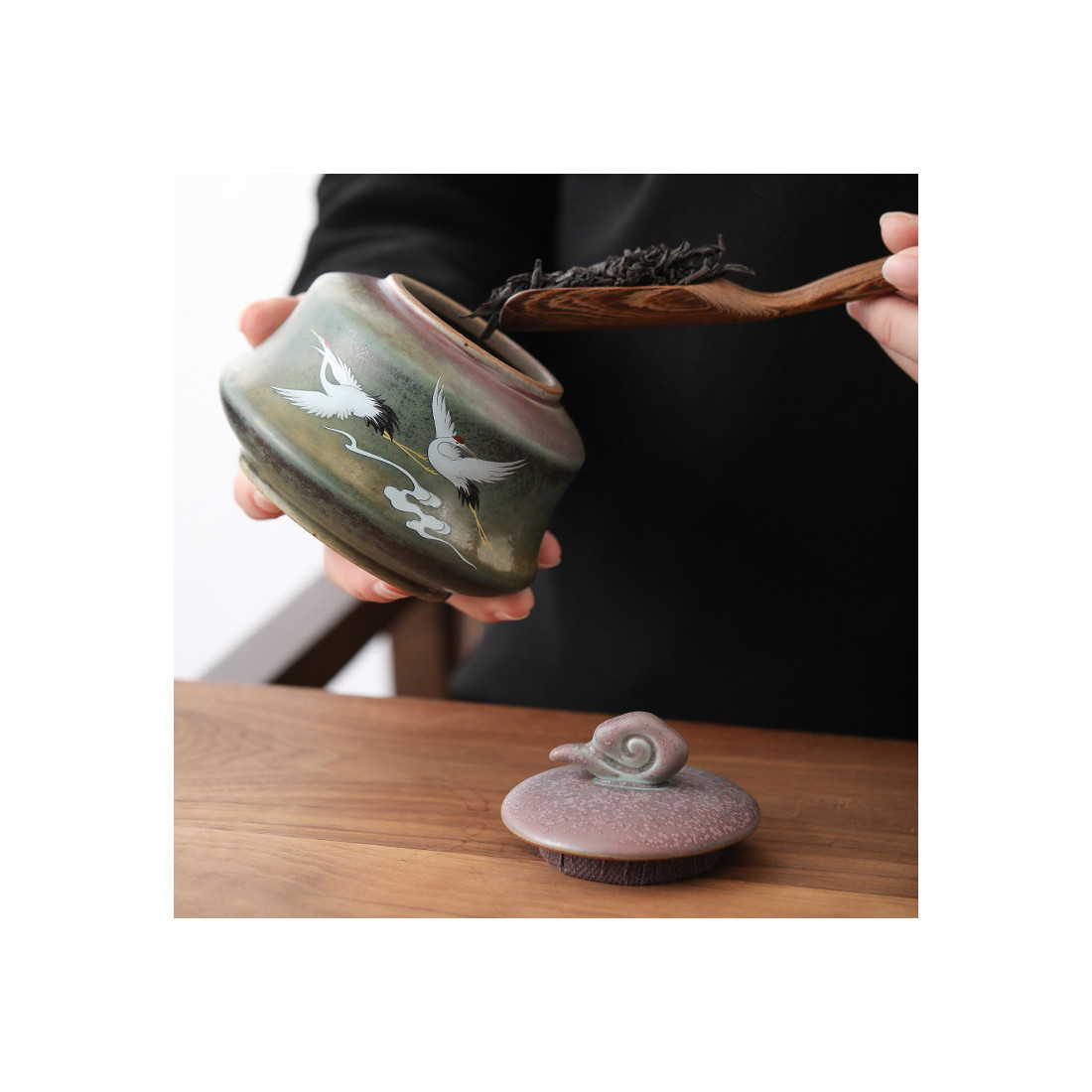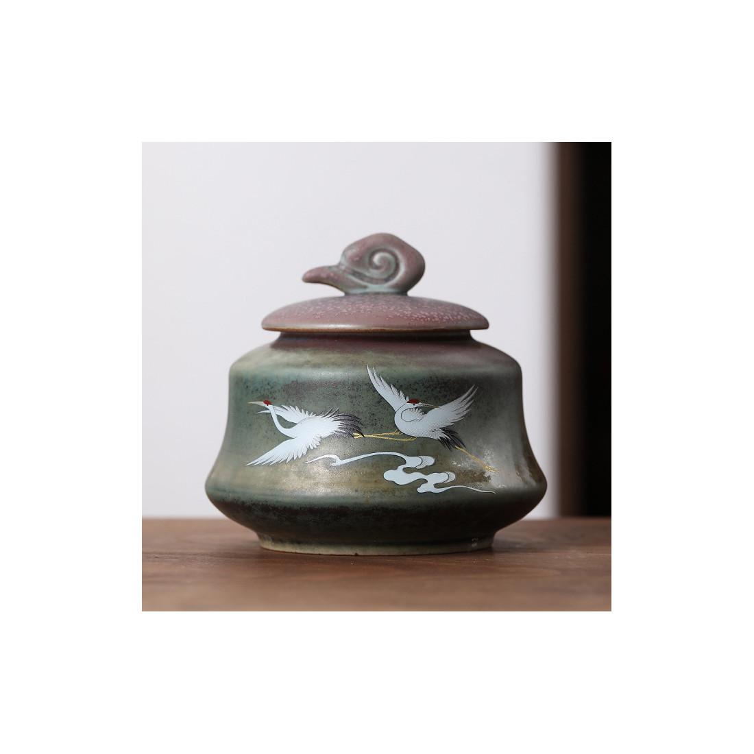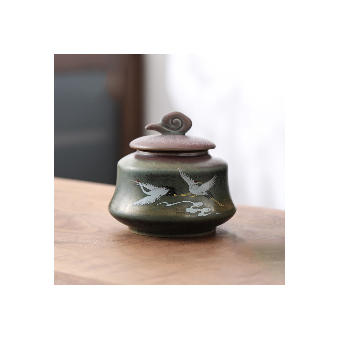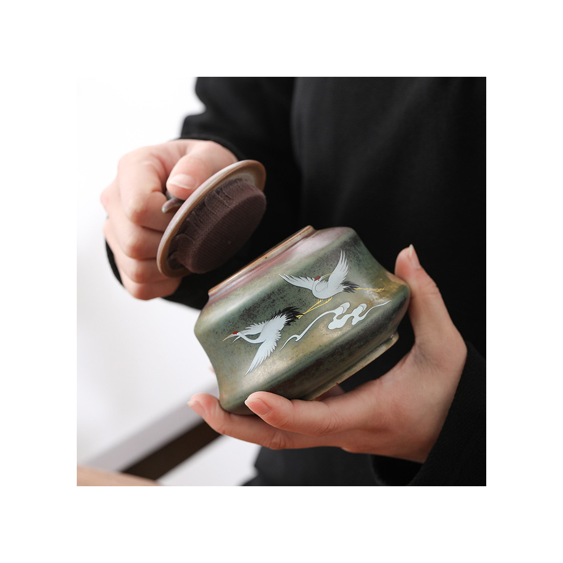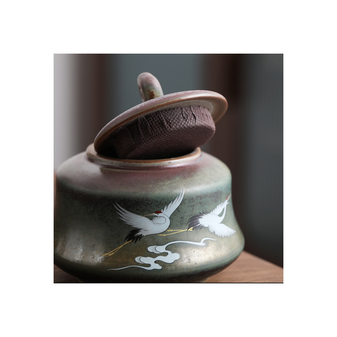 Так як покриття чайниця з ефектом яобянь, тобто у печі утворюється остаточний малюнок і колір глазурі, то всі чайниці трохи відрізняються за забарвленням, але зберігають малиновий, золотистий та зелений відтінок, показаний на фотографії. Малюнок — аплікація.
