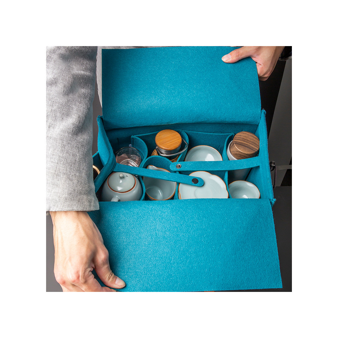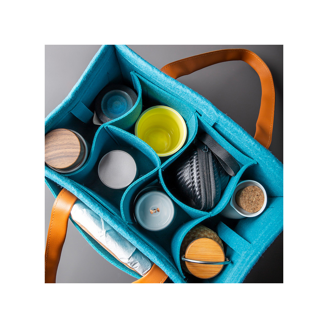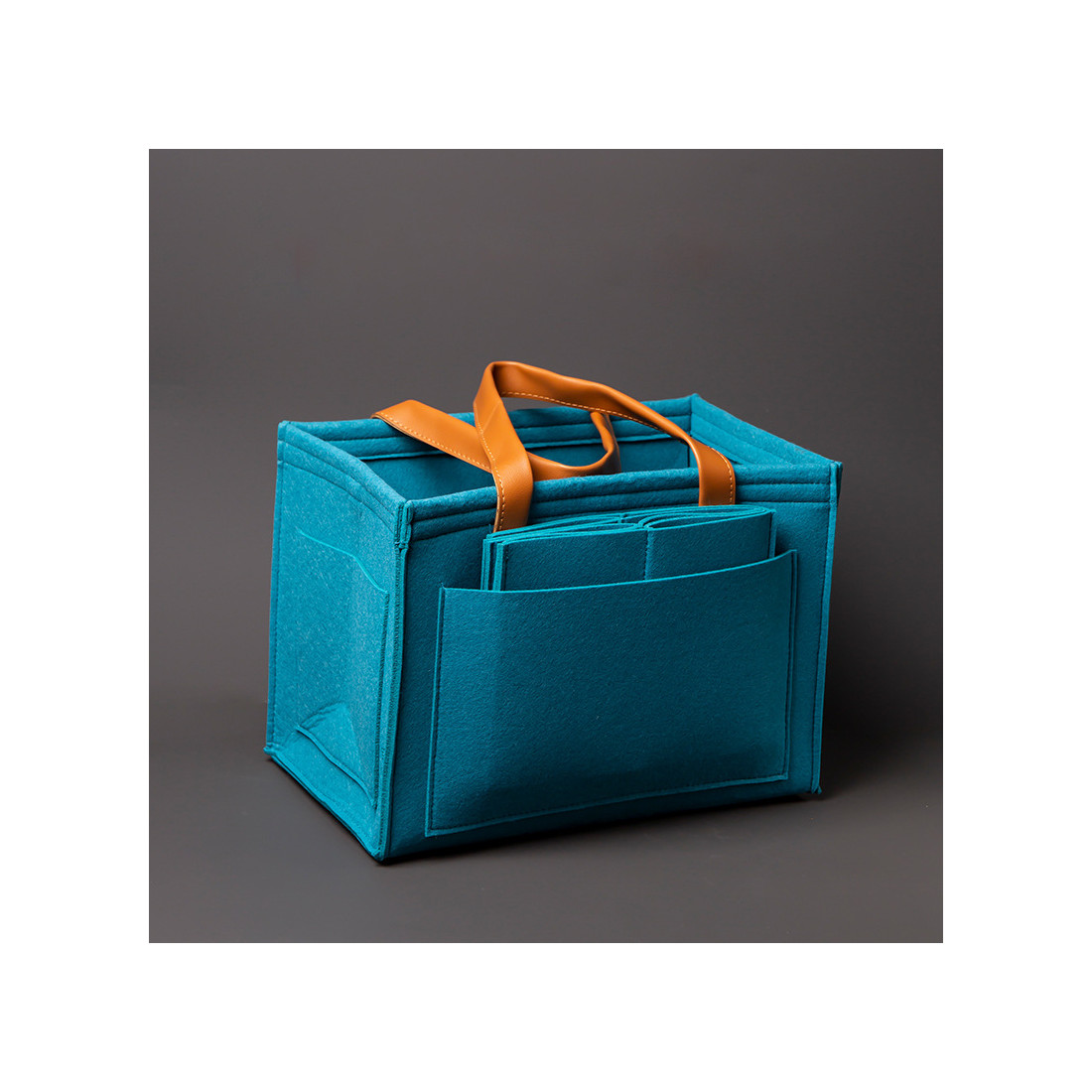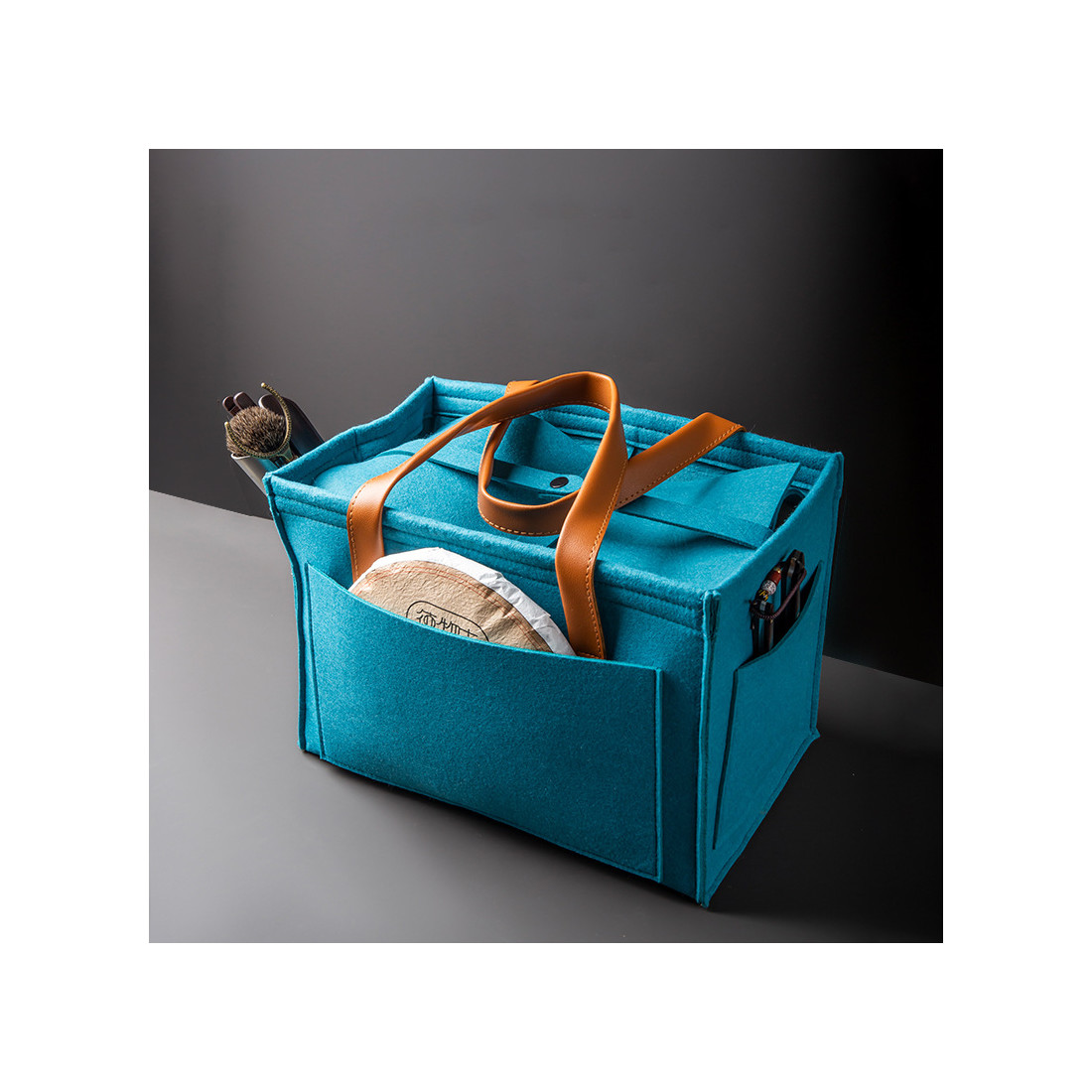 Сумка з товстої повсті з ручками зі шкірозамінника. Всередині вставлення, яке можна виймати, з відсіками для розмежування простору.