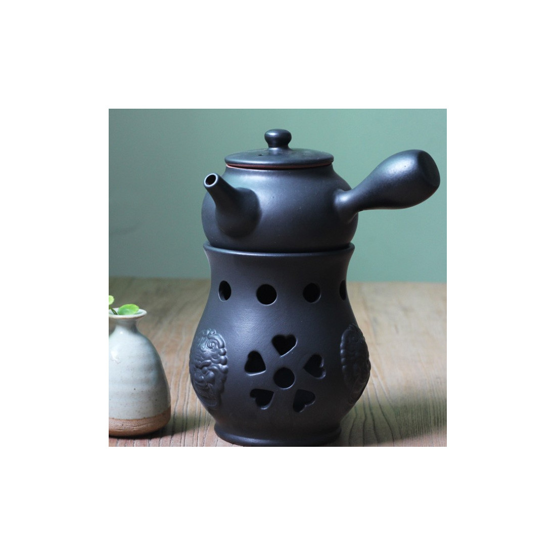 Чорний керамічний чайник "Лев" для варіння пуеру