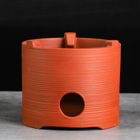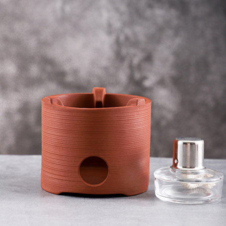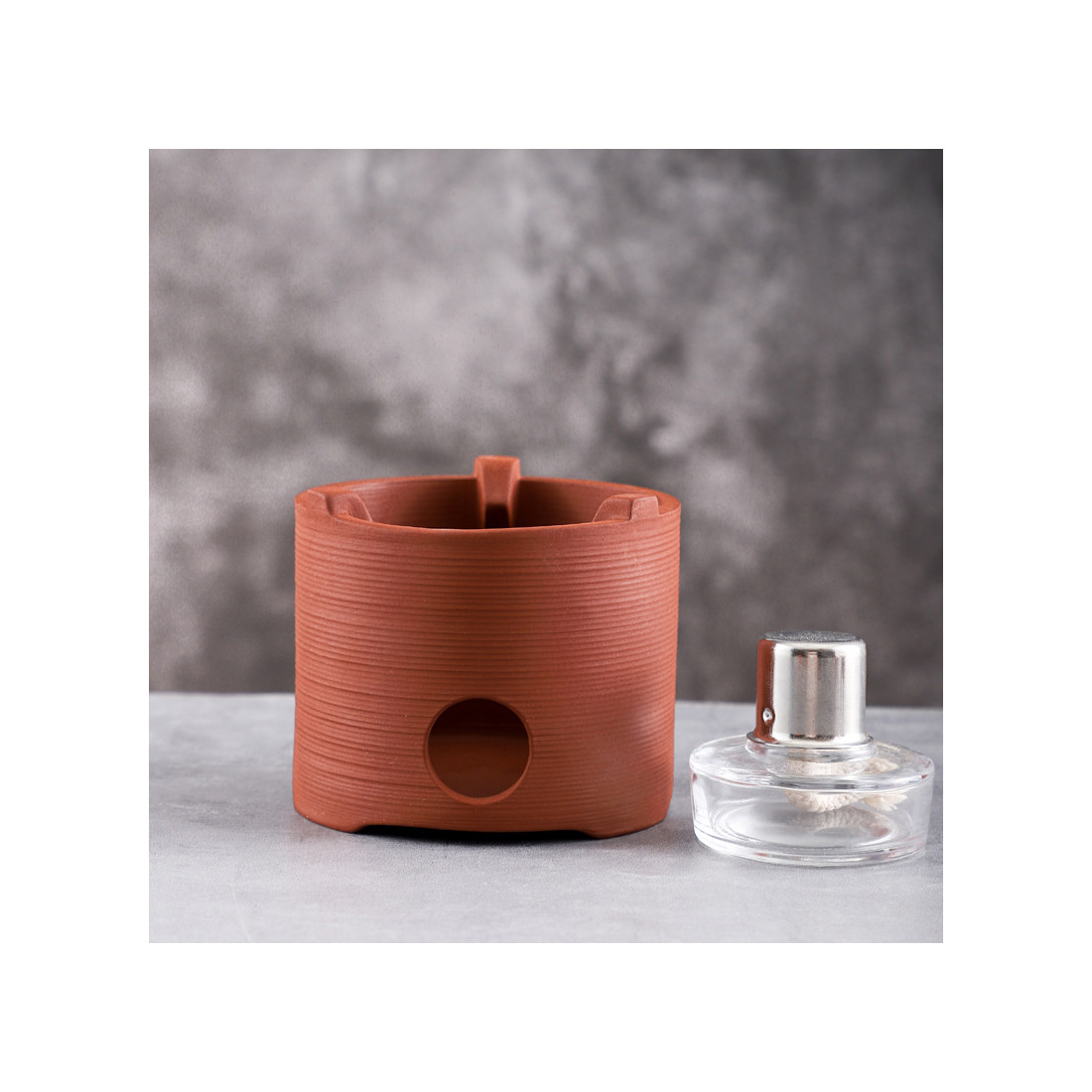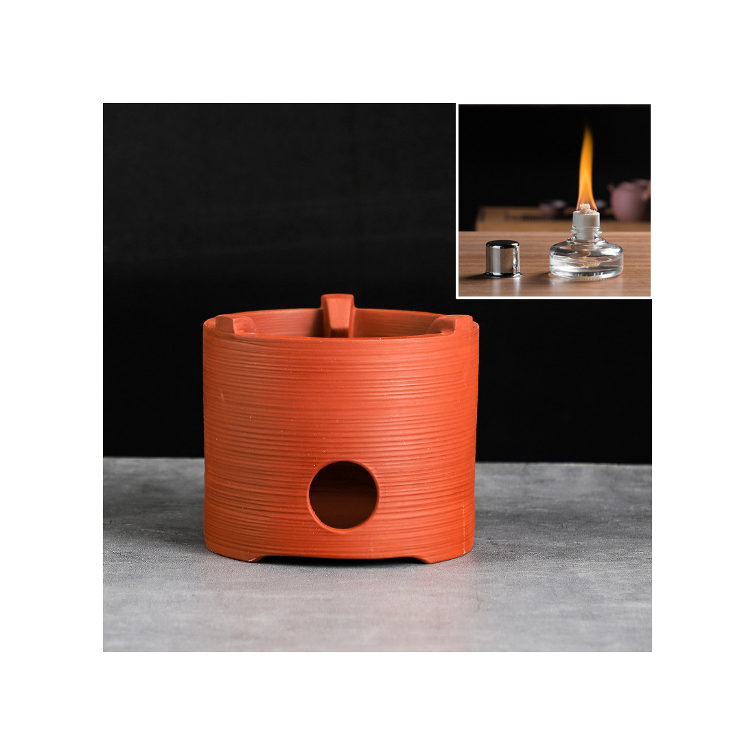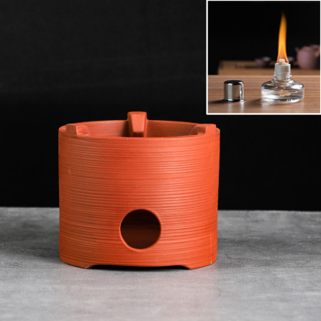 Вогнище із чаочжоуської червоної глини для варіння чаю зі спиртівкою. Варіння чаю відбувається безпосередньо у чайнику на спиртівці. До вогнища підійдуть чайники: скляний чайник із золотою намистинкою, скляний чайник із зеленою намистинкою, чайник "Гарбуз", чайник "Хризантема".