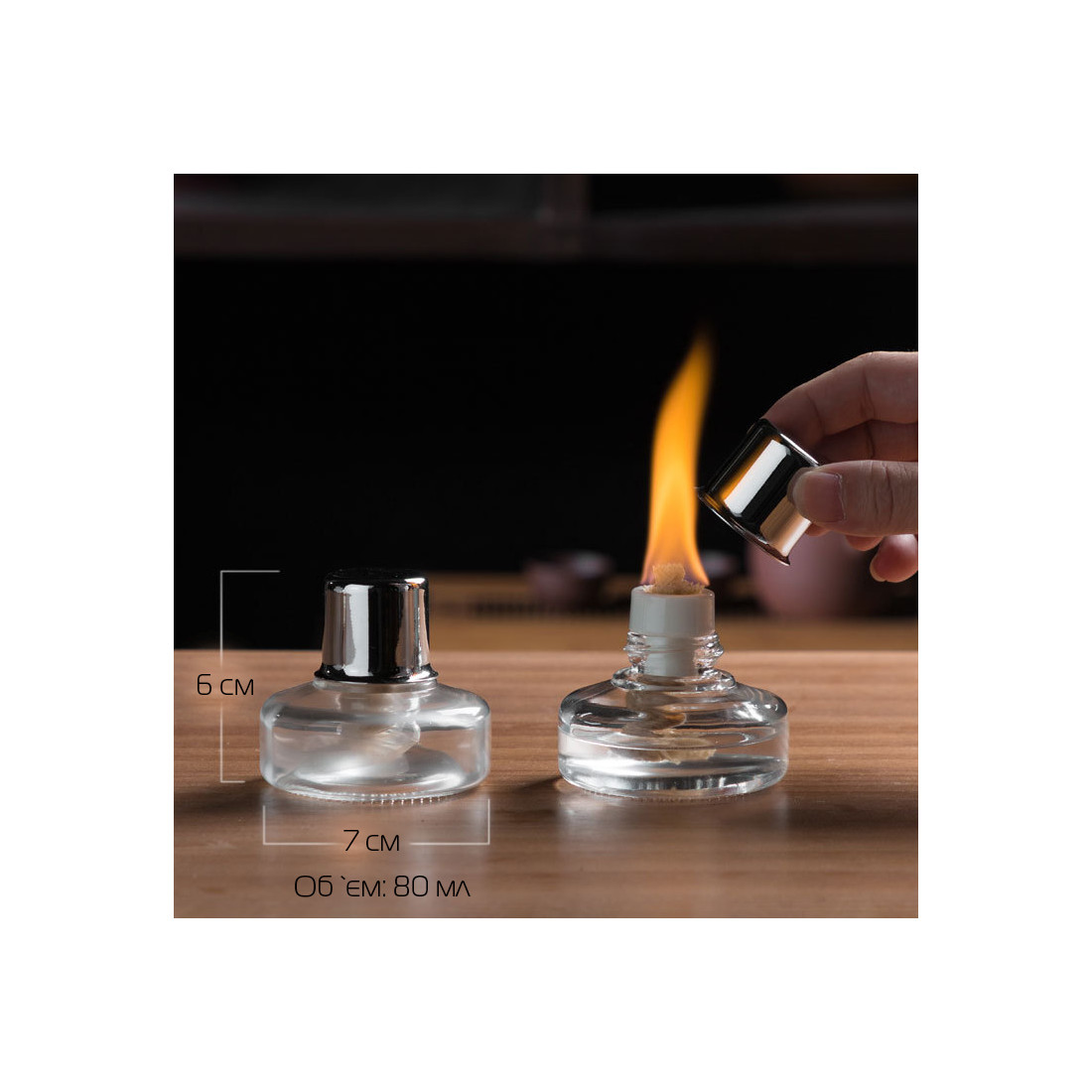 Спиртівка на 80 мл — достатньо для горіння більше 1 години. Рівень вогню регулюється заздалегідь, за рахунок висоти гноту.
