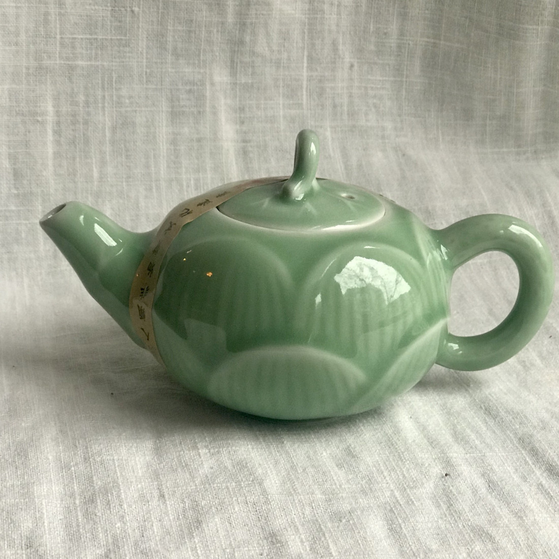 Порцеляна покрита блідо-зеленою глазур'ю. Це один із різновидів селадону — лунцюаньський випал. Колір посуду спокійний та глибокий, що підкреслює зелений відтінок чайного настою.