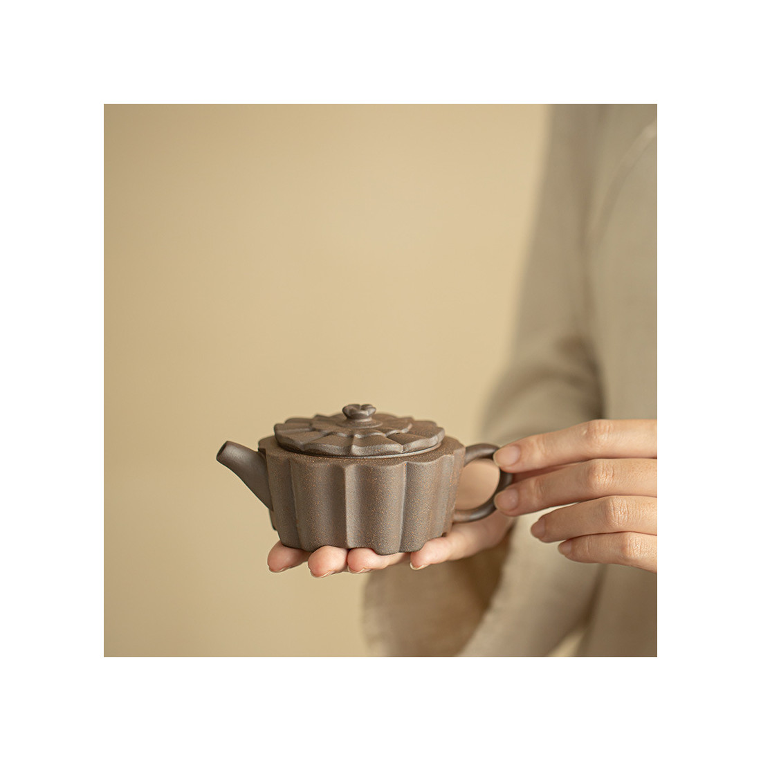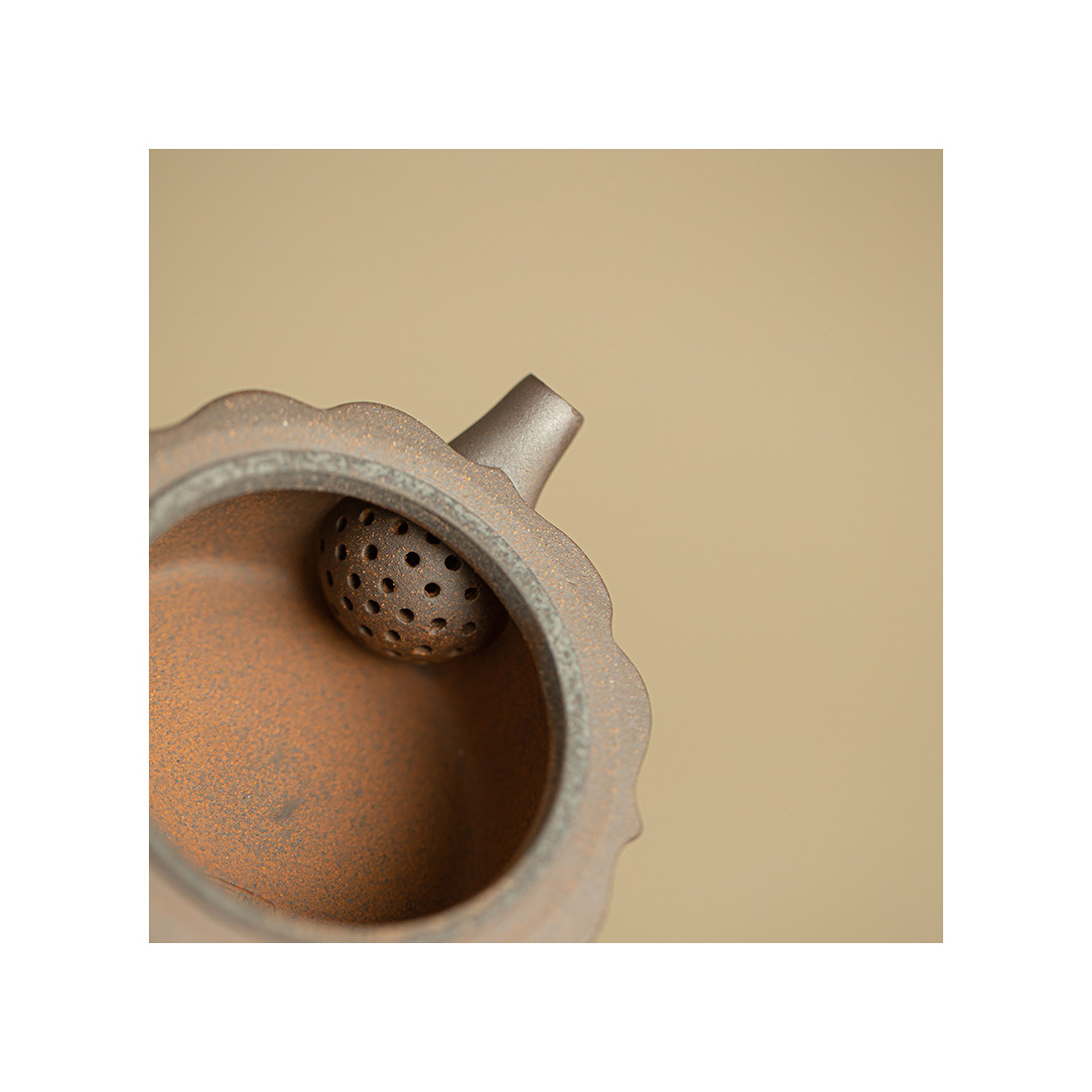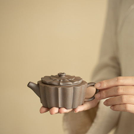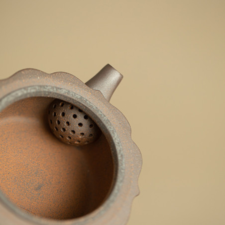 Зручний чайник для заварювання будь-якого чаю. Форма цілком відповідає канонам ліплення їсінських чайників, але використано звичайну глину. Великий отвір дозволяє закласти чай з великого листа, що ідеально підійде для білого чаю або північнофуцзяньських улунів. Шу пуер пофарбує цей чайник, але при правильному догляді, це може зробити його лише красивішим і фактурнішим.