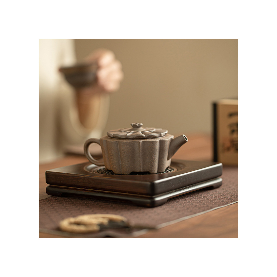 Художньою перевагою даного чайника можна назвати з'єднання матеріалу в стилі "грубої кераміки" та вишуканої та витонченої форми "водяного горіха". Ця дихотомія робить його яскравим персонажем на чайному столі, дозволяючи поєднувати з різними виробами, будуючи стилістику чайного набору на одночасній гармонії та дисонансі предметів. Наприклад, у поєднанні з вишуканими порцеляновими чашами чайник гармонує з ними красою форми, але дисонує за матеріалом, а з грубими чашами навпаки: дисонує за формою, але поєднується за матеріалом.