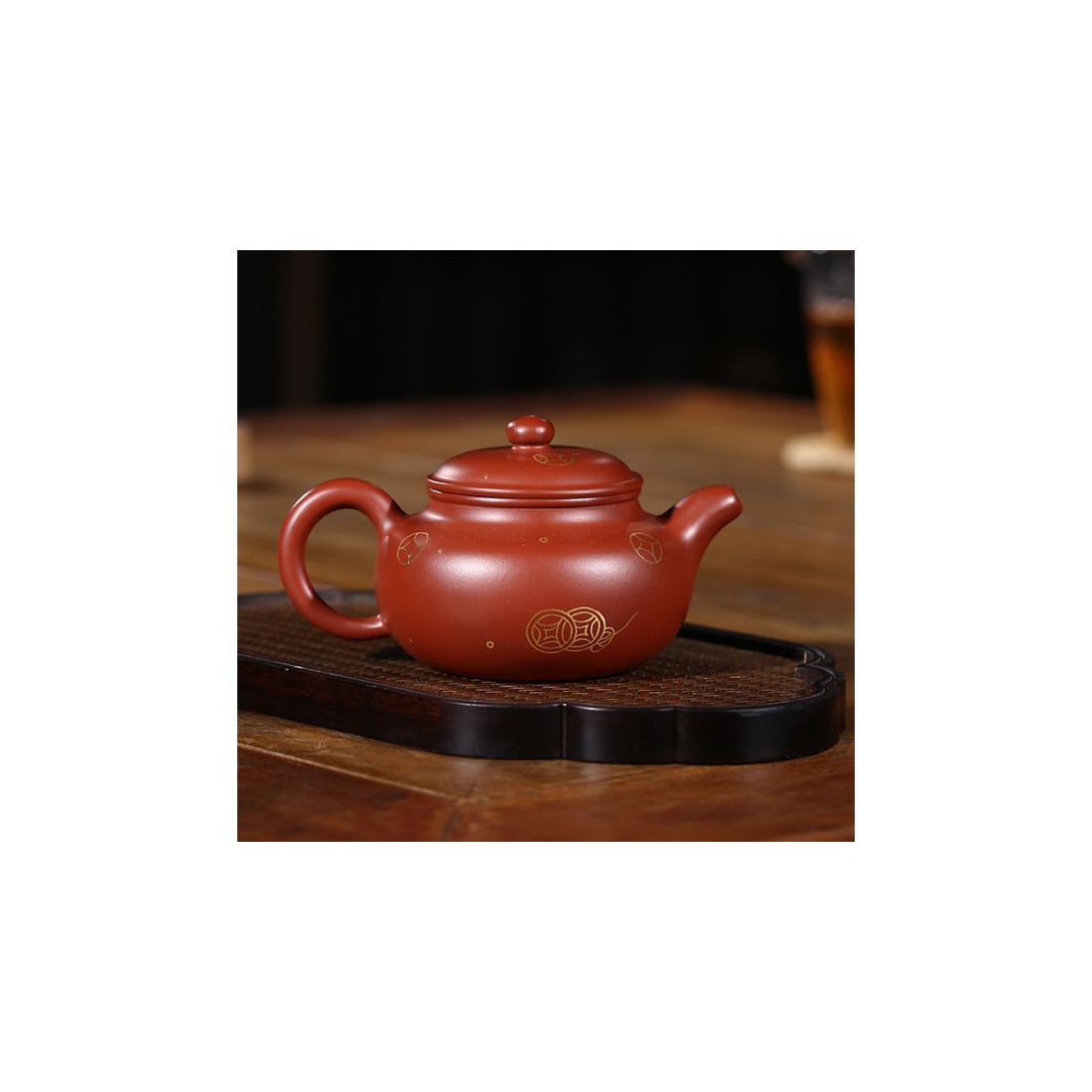Форма: Чайник під старовину із золотим малюнком 描金仿古Глина: Дахунпао 大红袍Об'єм: 200 мл