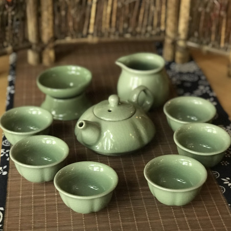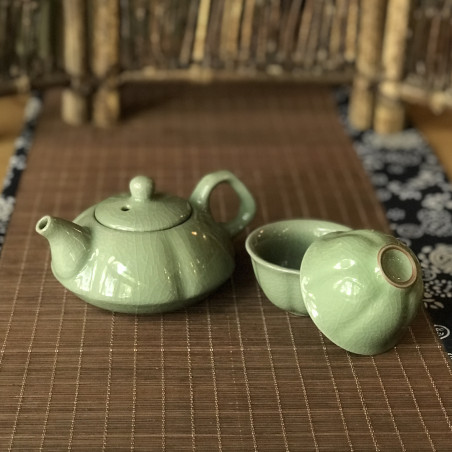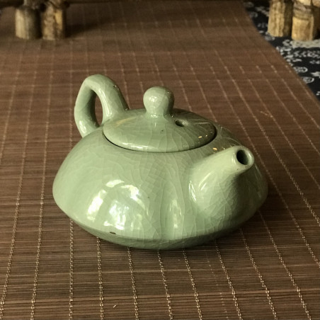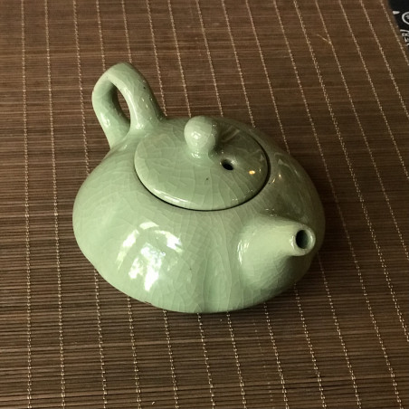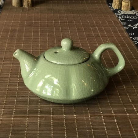 Чайник із кераміки геяо кольору зеленої сливи. Класична кераміка без малюнка.