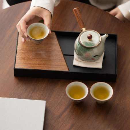 Завдяки глазурі стінки чайника товсті та добре утримують тепло. Ручка та намистинка на кришці з дерева. Ручка відкручується від чайника. Шийка чайника трохи витягнута та вигнута, завдяки такій конструкції вода не протікає з-під кришки. Носик оснащений "пташиною клітиною", злив води рівний насичений.