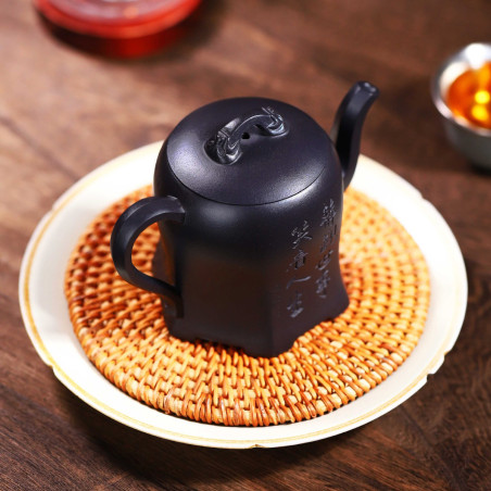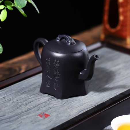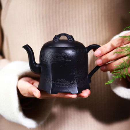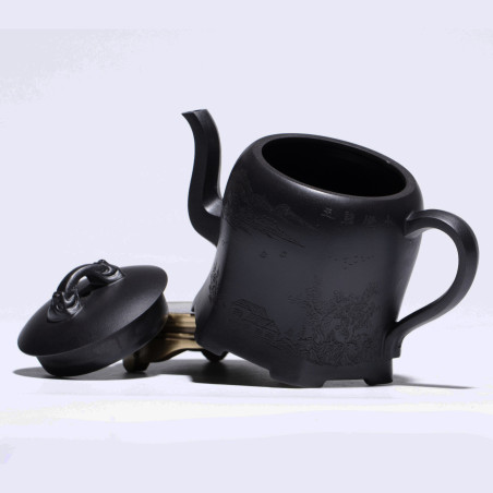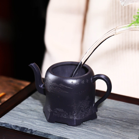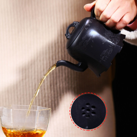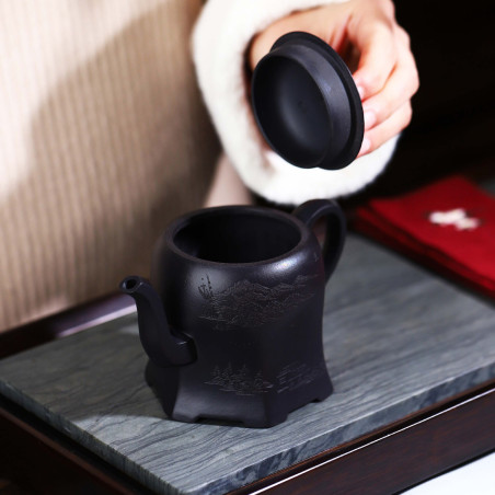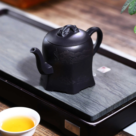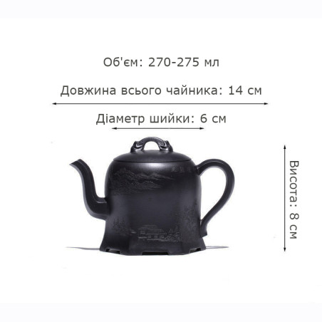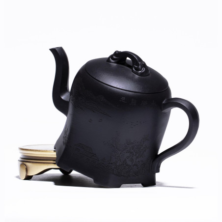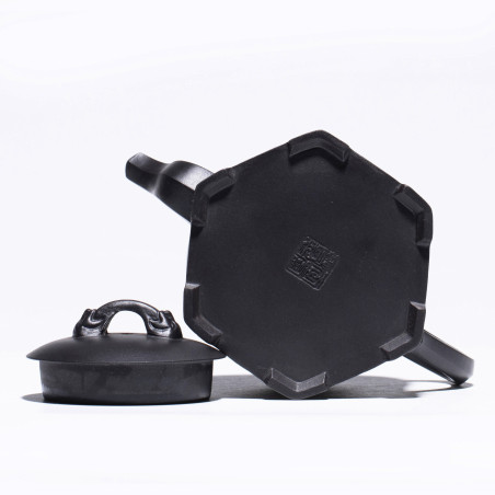 100% ручна работа. Складна форма "Плечо красуні", в якій носик витончено виходить із середини тіла чайника, якому при цьому надано форму шестигранника. Технічно ідеальний чайник із якісної їсінської глини. Щодо форми чайника — відмінний злив, водний замок.