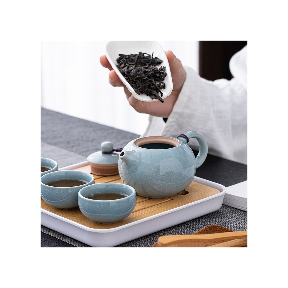 Чайник товстостінний із блакитного ґеяо. Відмінний злив: зчеплення кришки з тілом чайники гарне, без глазурі. Чайник із шнурком для кришки.