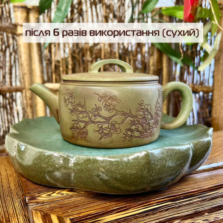 Чайник дуже пористий, швидко фарбується, із світло-бірюзового стає темно-зеленим. Дивіться трансформацію на фото.