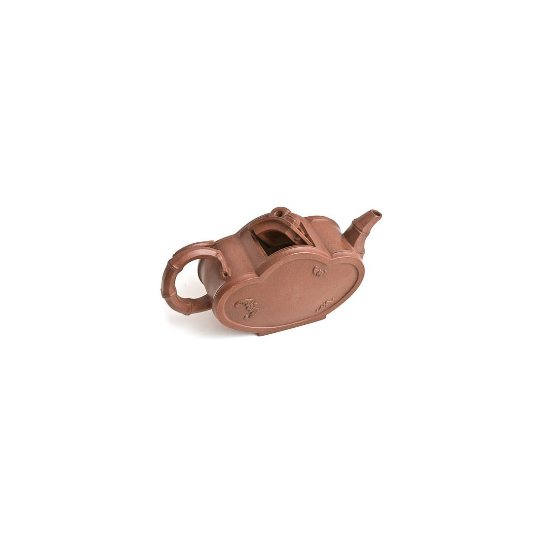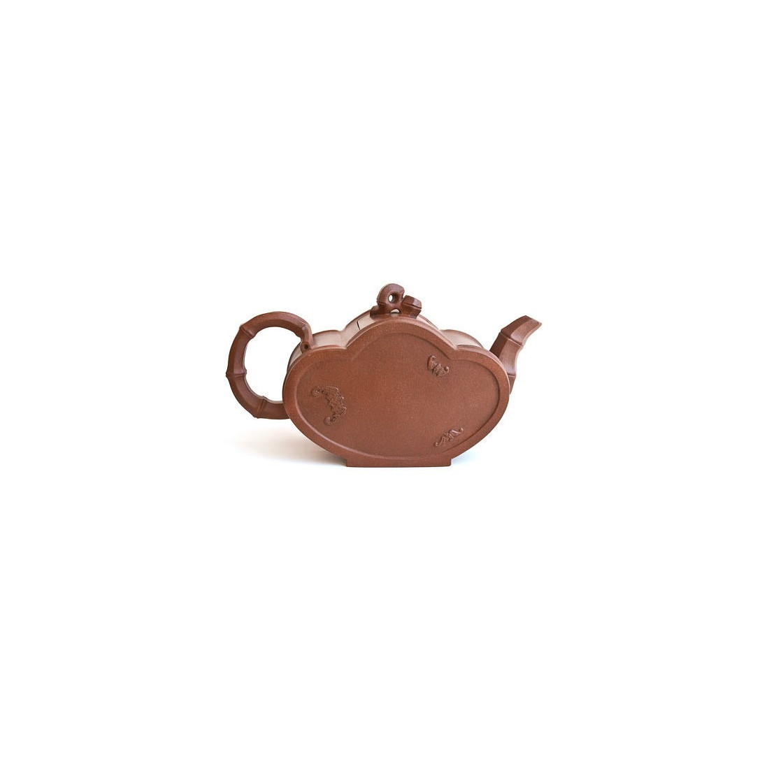 Елементи чайника виконані як бамбука. На тілі з одного боку зображена бамбукова гілка і дві кажани — символи довголіття, а з іншого — три кажани. Тіло ж чайника нагадує три скріплені сегменти бамбука, а ручка на кришці виліплена у вигляді витонченої бамбукової гілки. Гармонійна та тонка робота.