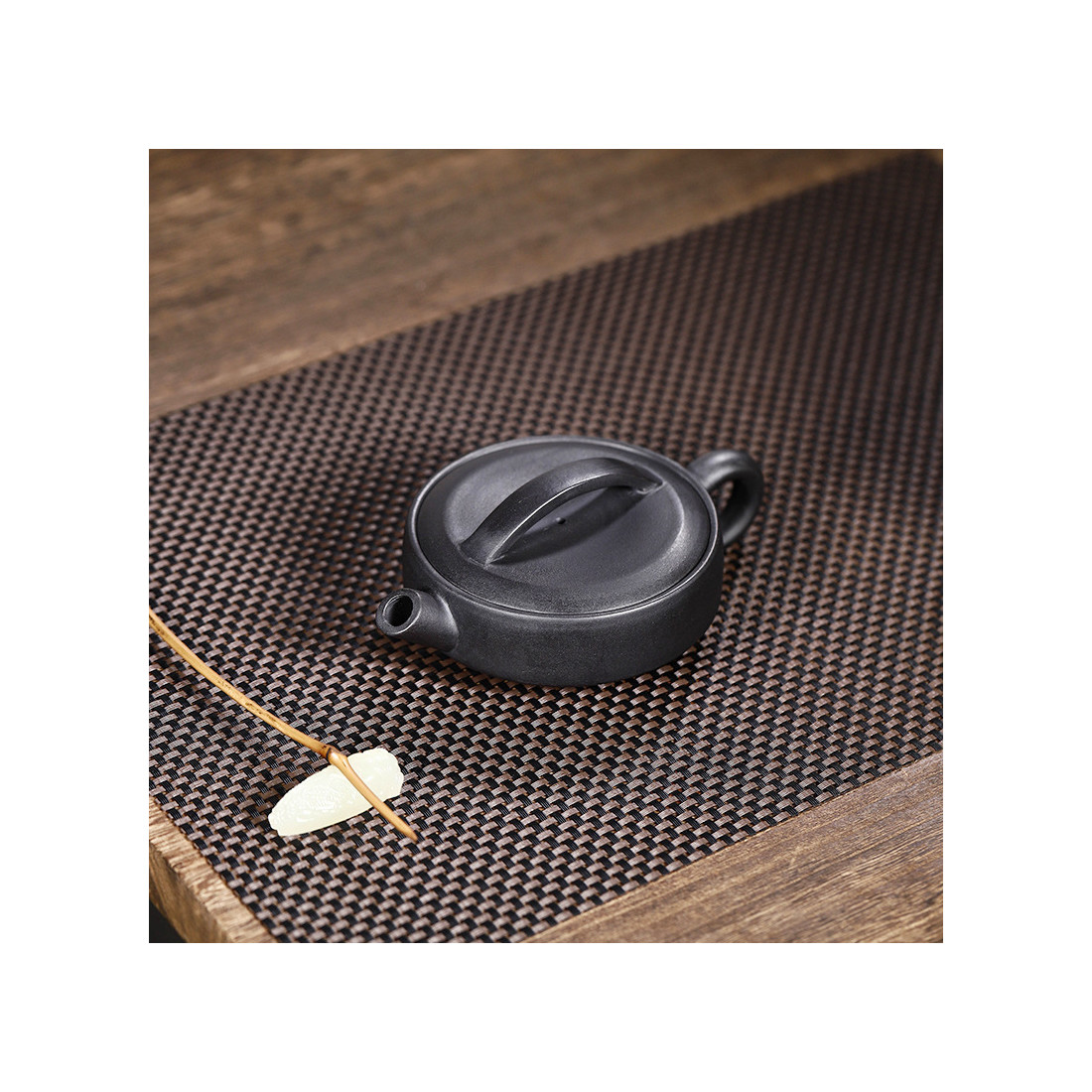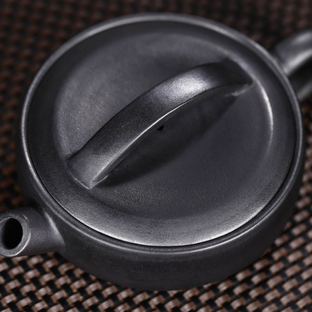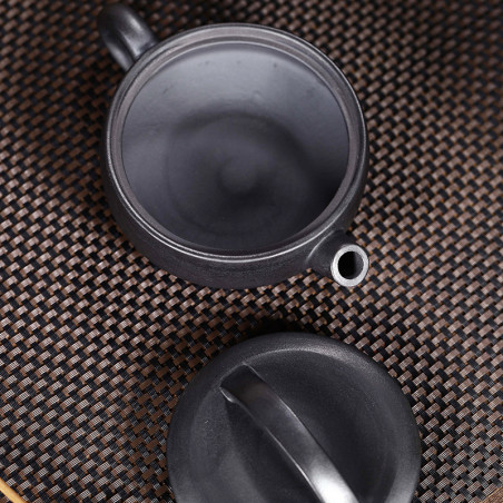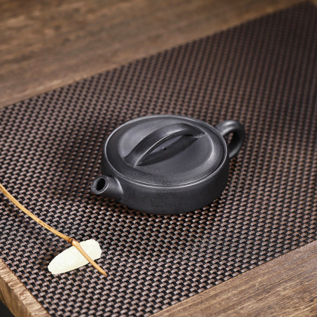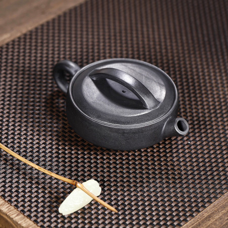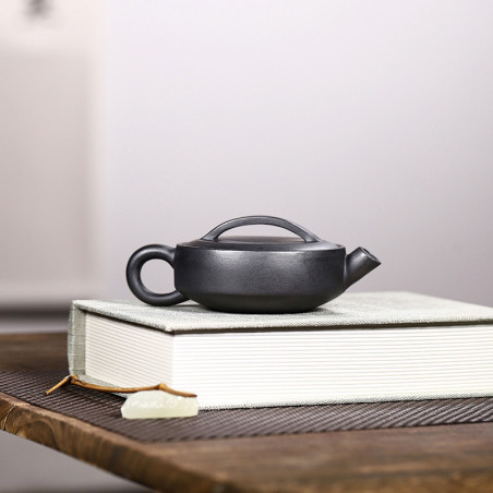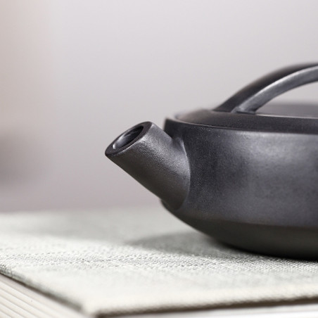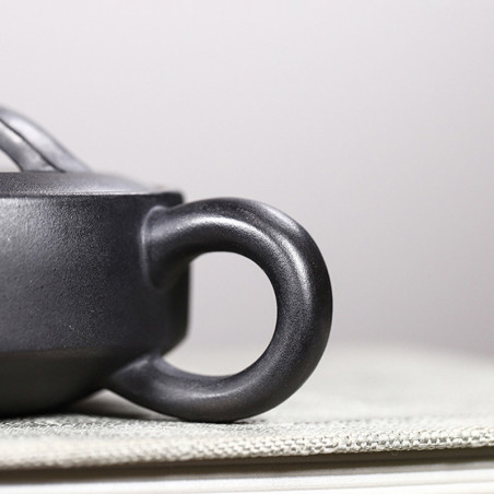 Перше, що помічаєш у чайнику — його вагома вага. Дно та кришка зроблені товстими та масивними. Завдяки глибокому сірому кольору глини з металевим блиском чайник виглядає дуже стильно, при цьому легко вписується як у модерновий, так і традиційний чайний простір. Дана форма є сучасною інтерпретацією класичної "ханьської черепиці" і крім лаконічного дизайну без "прикрас" характеризується такими критеріями: максимально плескате тіло з дуже широким отвором для закладки чаю. Така модифікована форма робить чайник ще зручнішим у використанні та підходить для заварювання листя будь-якого розміру та форми.