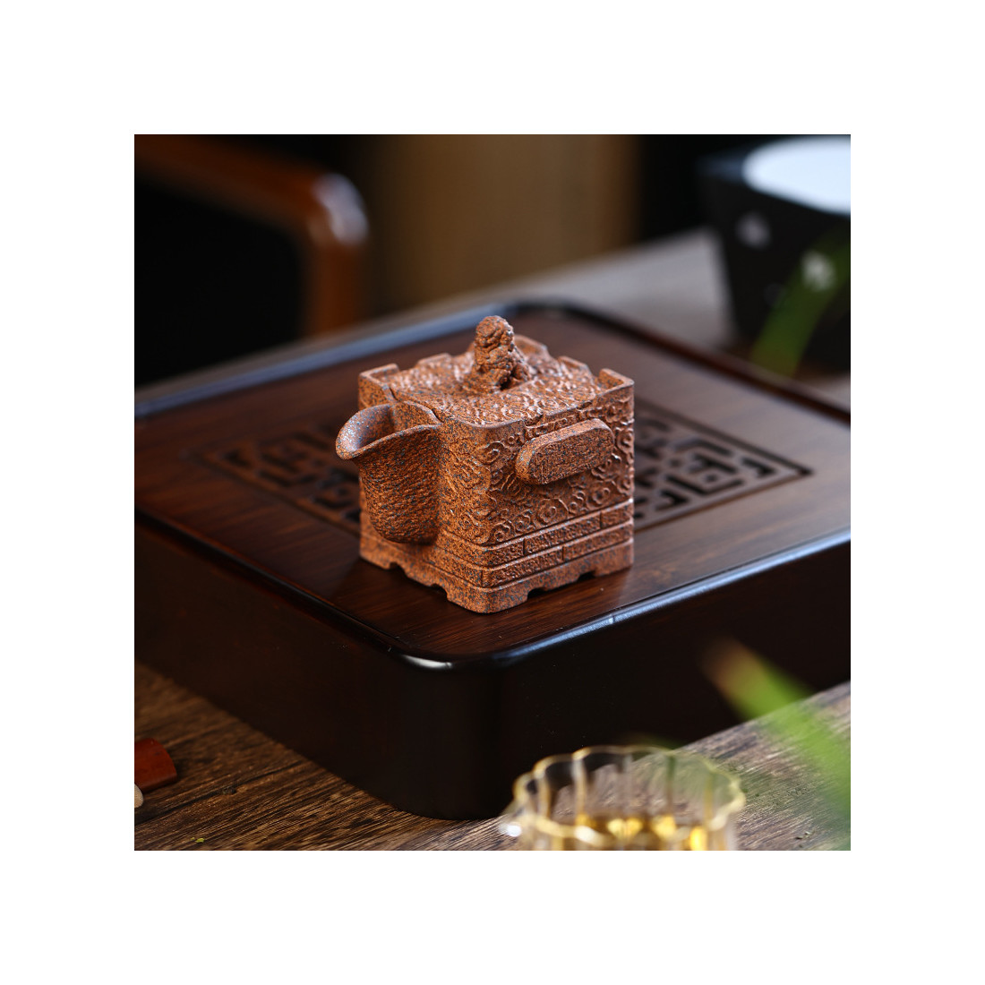 Поетичний образ чайника — фортеця з потужними стінами на всі чотири сторони світу, що йде в хмари. На верху кришки фігурка лева, що оберігає від ворогів.