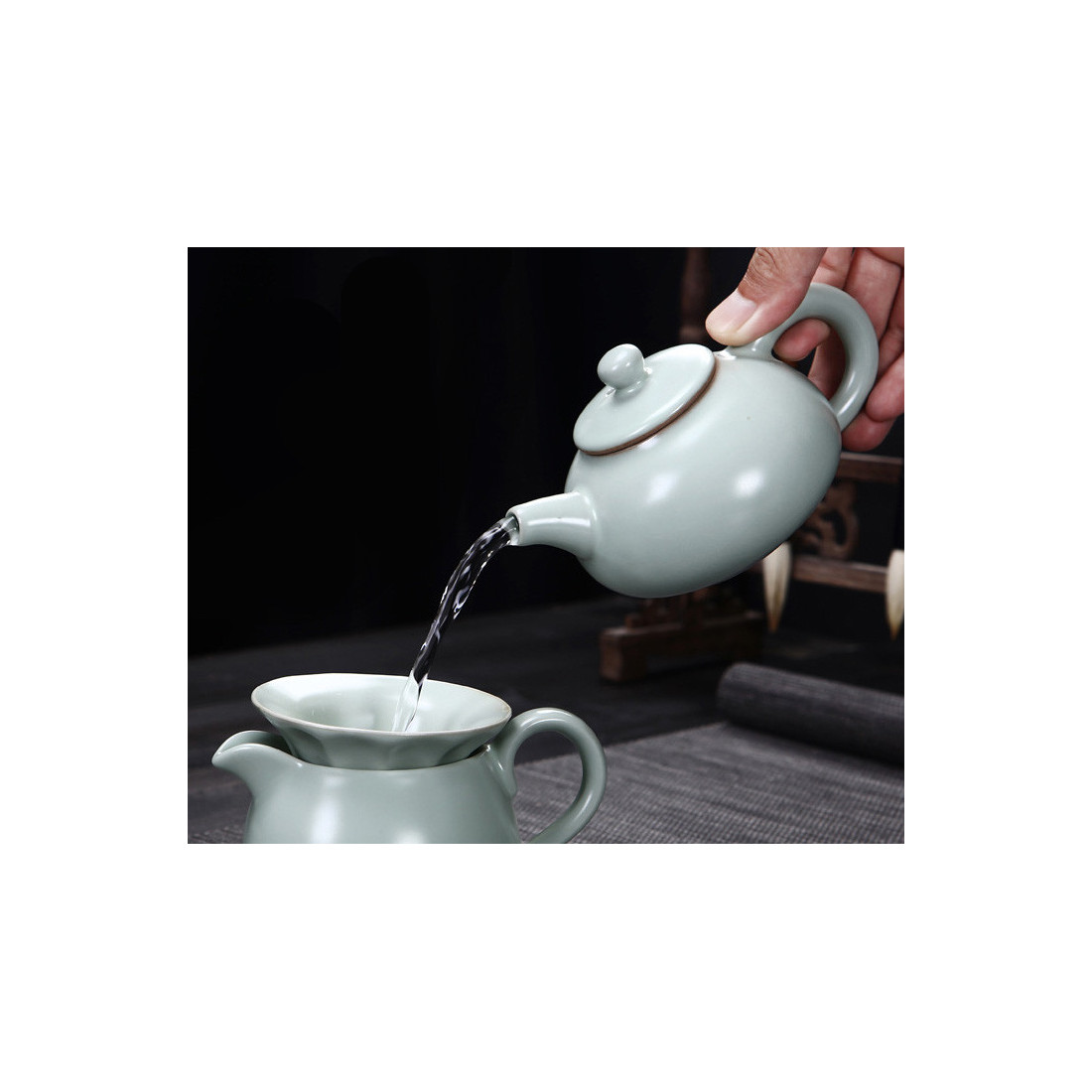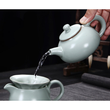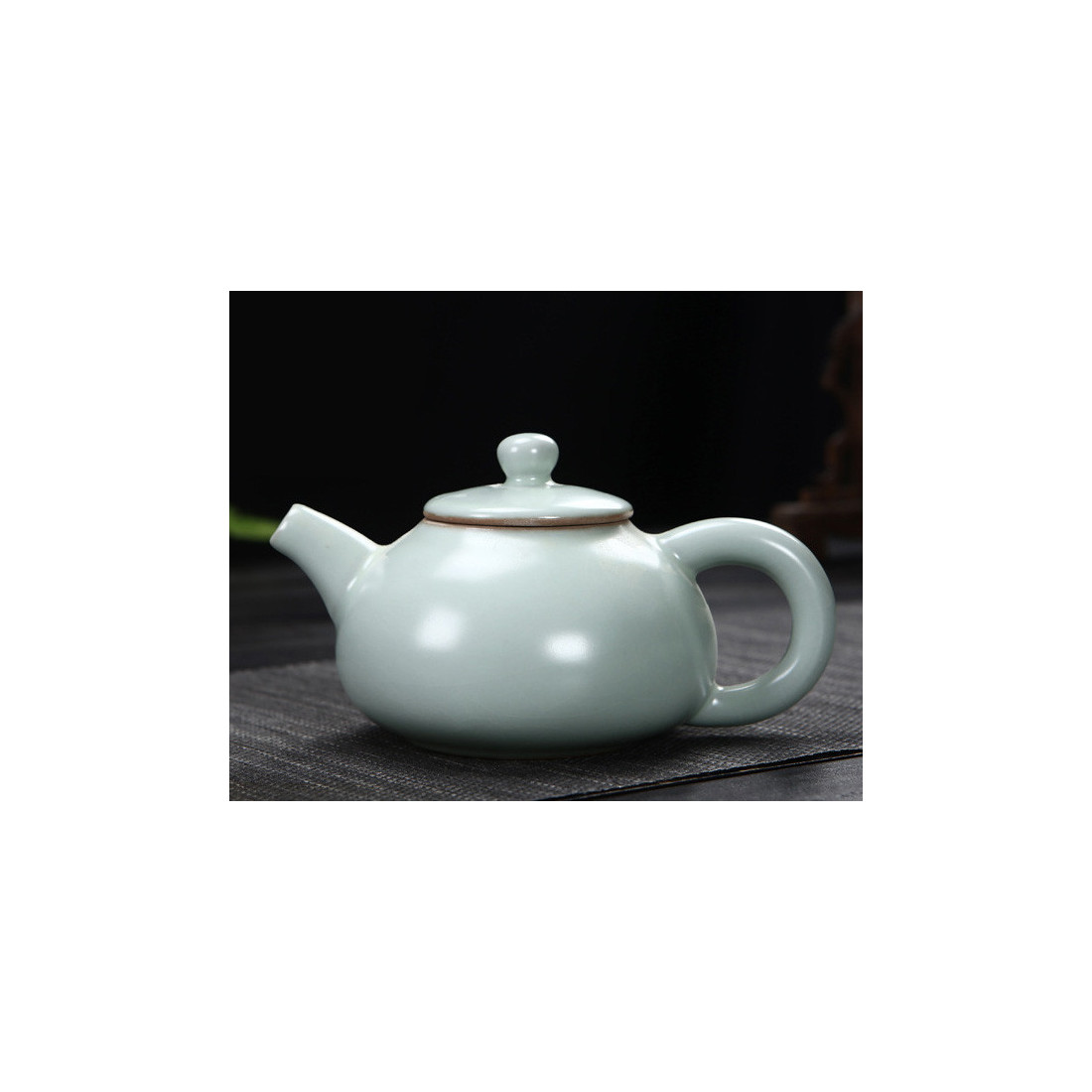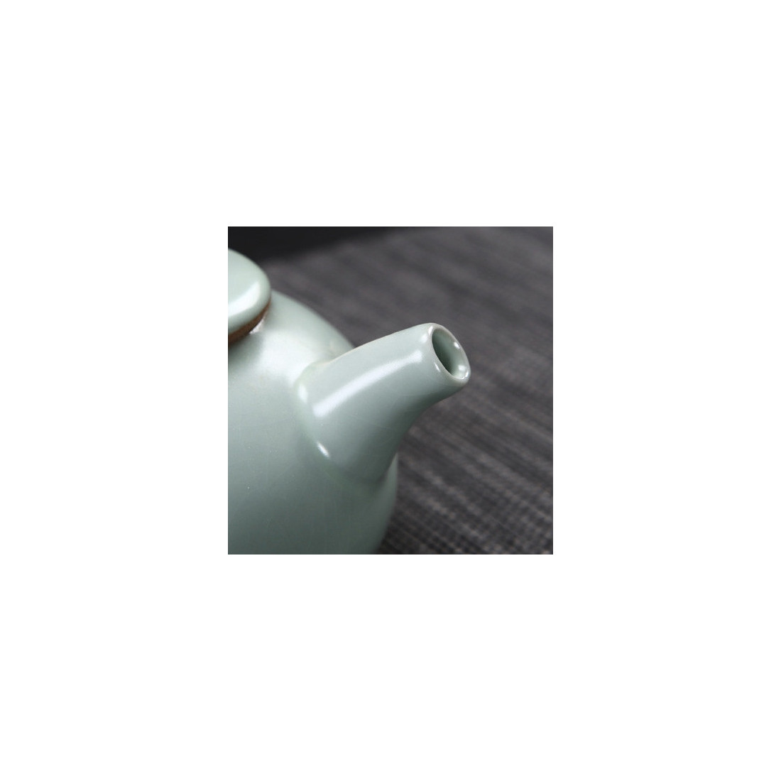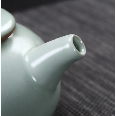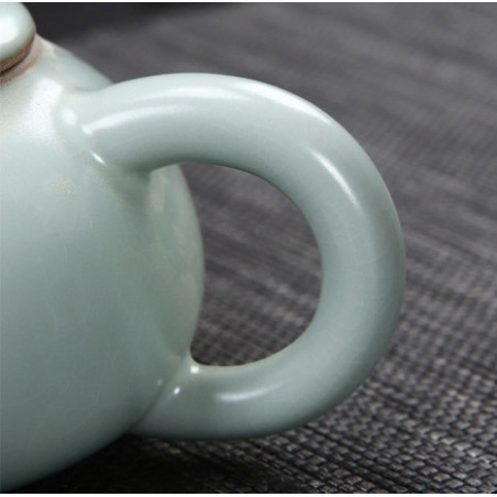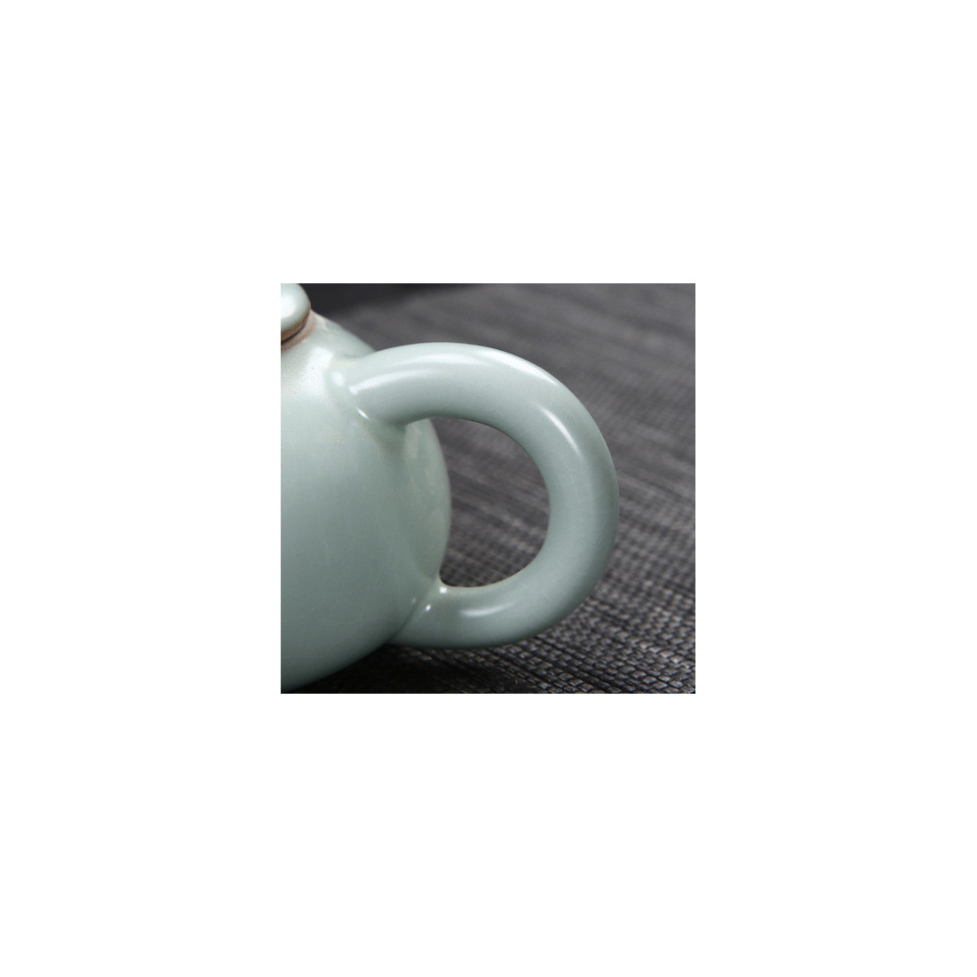 Чайник виконаний з кераміки жуяо місячно-білого кольору (юебай, 月白) зі сріблясто-блакитним відтінком.