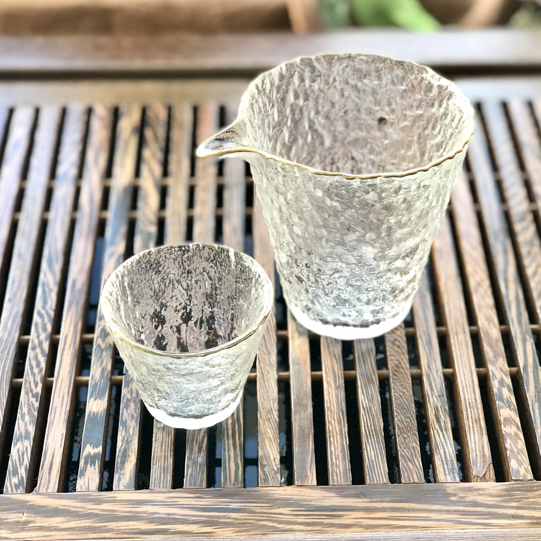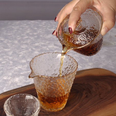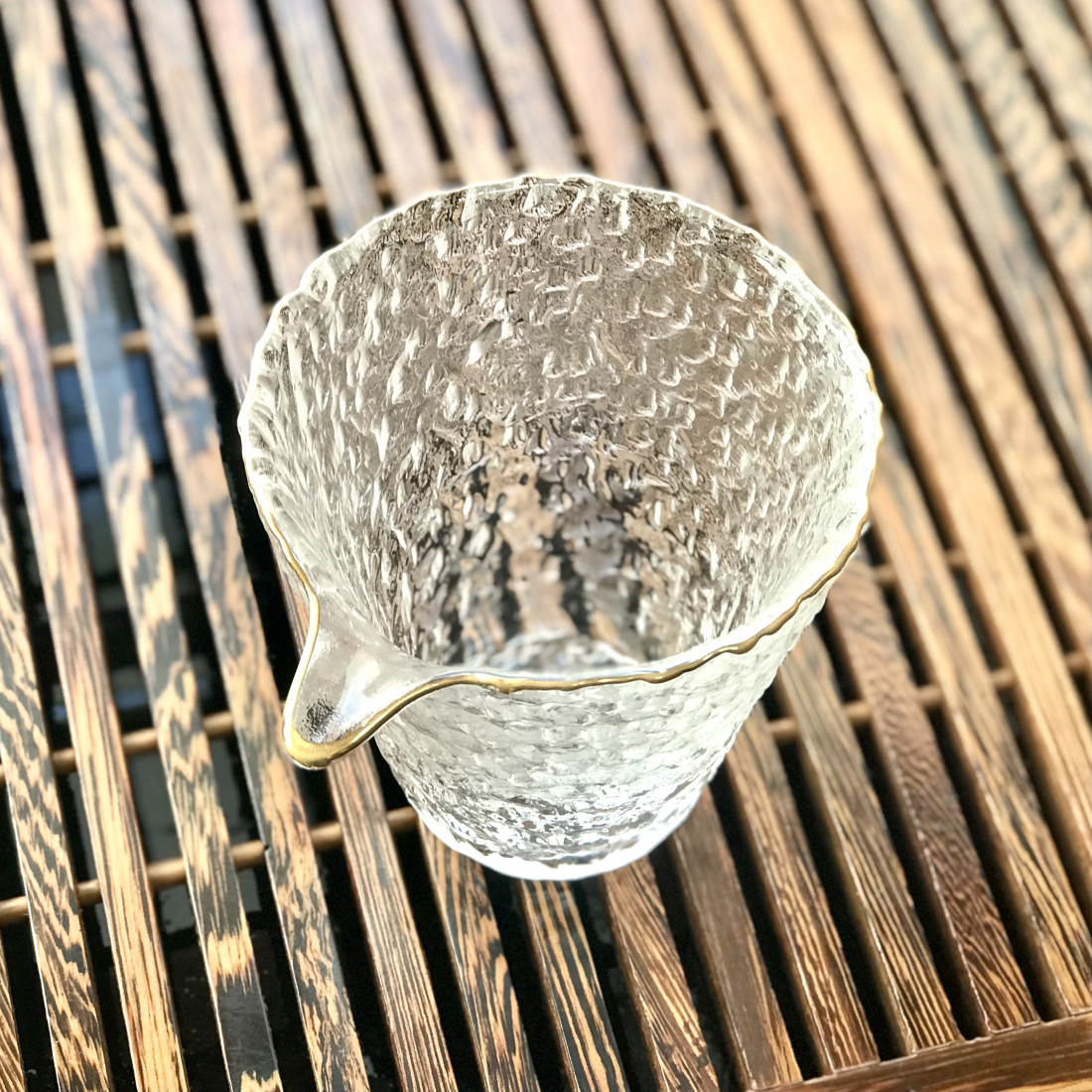 Чахай з кришталю із позолоченим обідком. Товстостінний та важкий. Красива фактура, що імітує лід.
