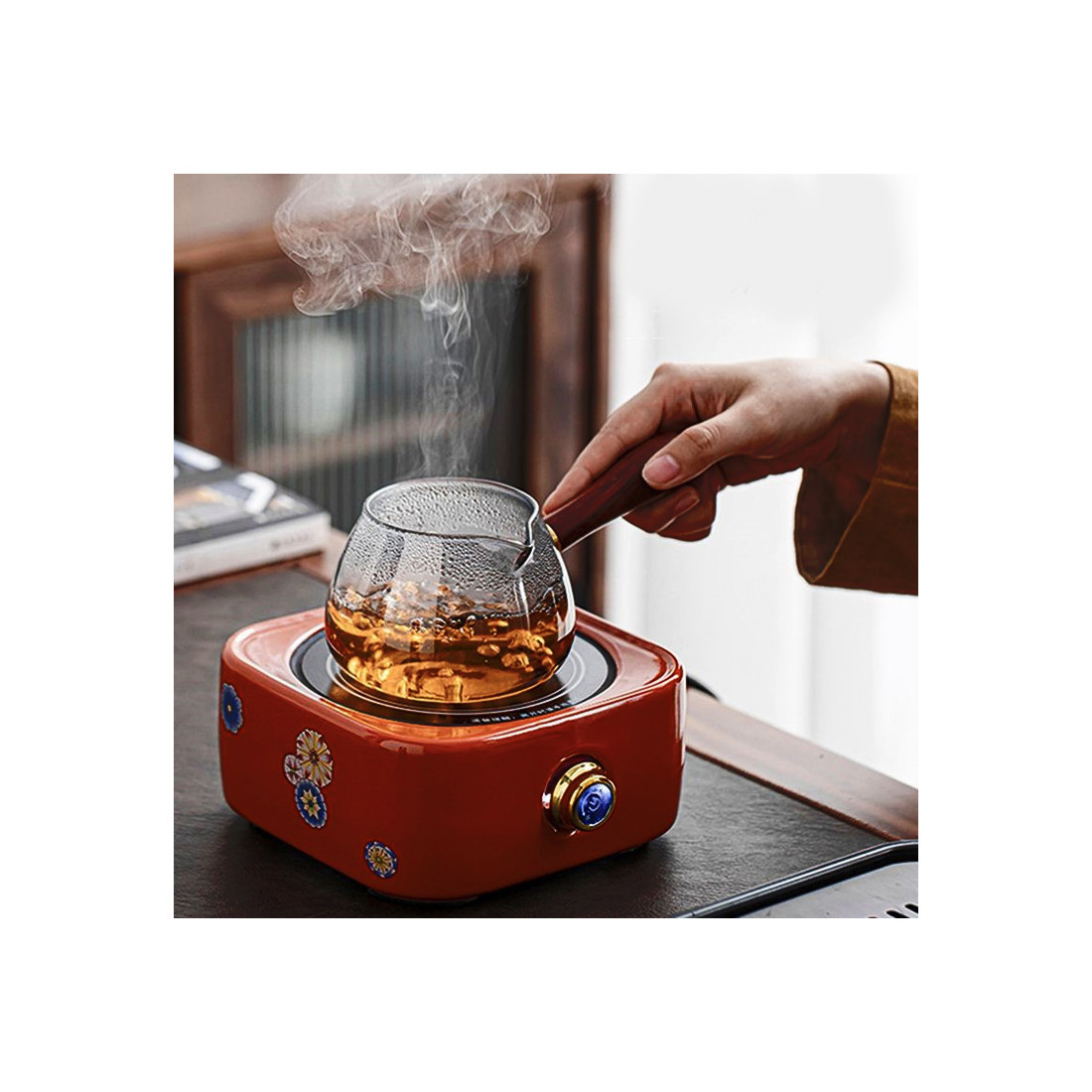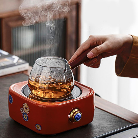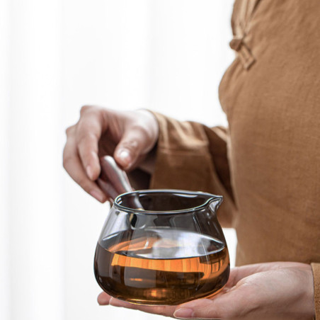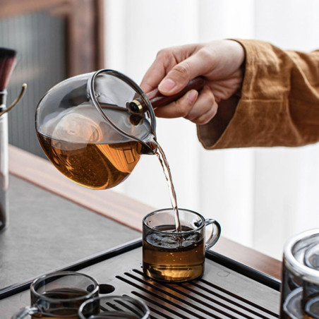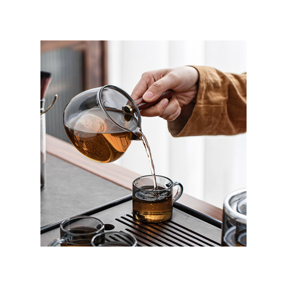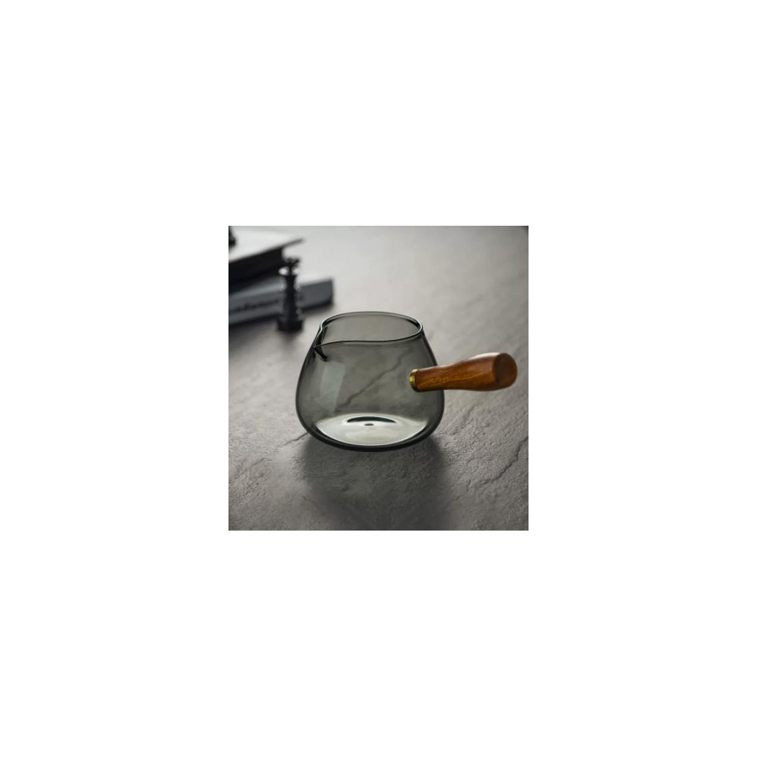 Чахай із сірого скла з бічною дерев'яною ручкою