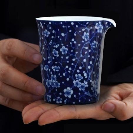 Яобянь означає, що остаточний малюнок на поверхні та колір виробу формується при випалюванні, тому всі предмети виходять унікальні. Подібні глазурі цінувалися з давніх-давен, тому що крізь точки, лінії та потіки на них можна було розглянути хмари, дощ, вогонь, річки, сніг, квіти тощо. В даному випадку на поверхні можна побачити малюнок зливи: падаюча стіна дощу або краплі на склі в синьо-білому кольорі.