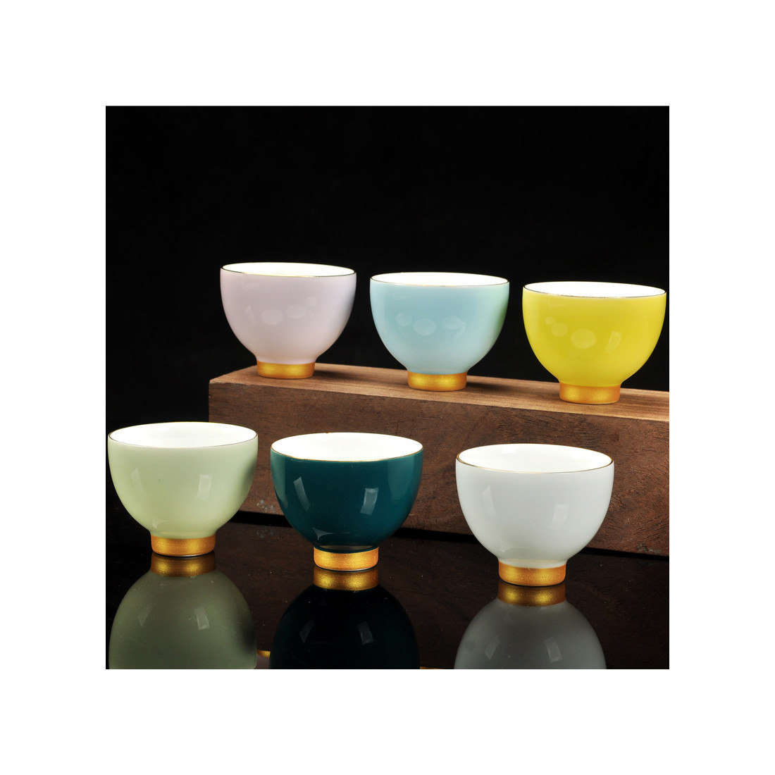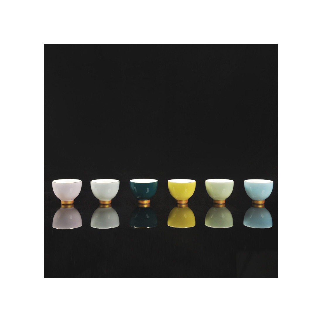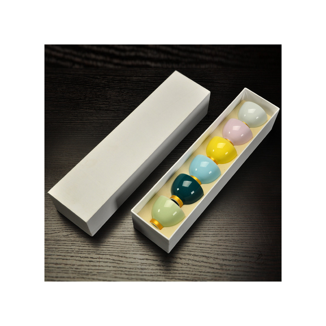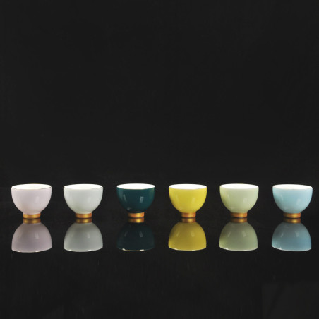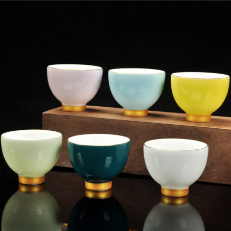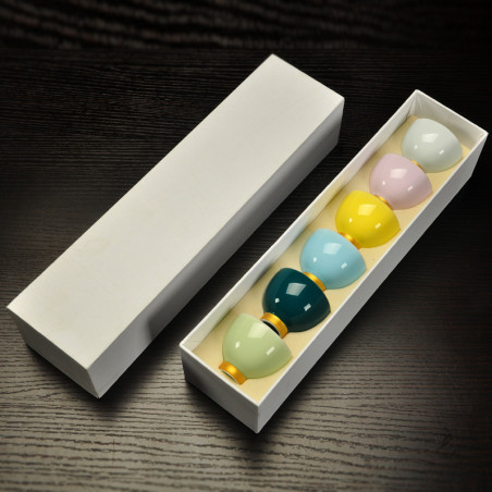 У набір входять 6 чаш різного кольору. Порцелянові чаші, зсередини білі, зовні кольорові. Ніжки забарвлені золотим кольором, але не дуже акуратно.