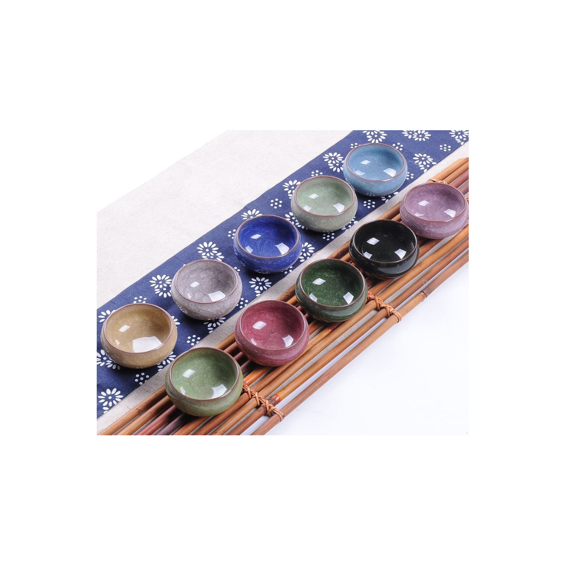 Одна з особливостей «колотого льоду» - різноманітність яскравих кольорів. Для любителів традиційної естетики чаювання підійдуть білі, бежеві та зелені відтінки. А для тих, кому нудні приглушені природні тони — створені сині, блакитні, фіолетові глазурі. Не обов'язково збирати набір в одному кольорі, на чабан прекрасно виглядає саме поєднання предметів різних кольорів. Граючи з фарбами та предметами можна створювати холодні зимові, радісні весняні та затишні осінні набори.