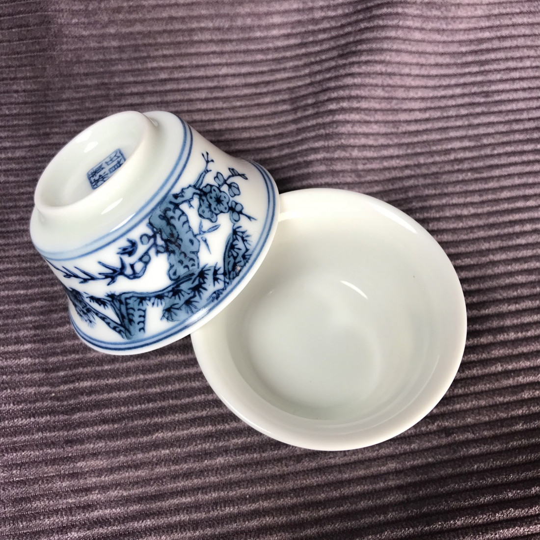 На чашах зображені сосна, снігова злива та бамбук, які можна зустріти взимку у Китаї. Тому в Піднебесній їх називають "три друзі зими".