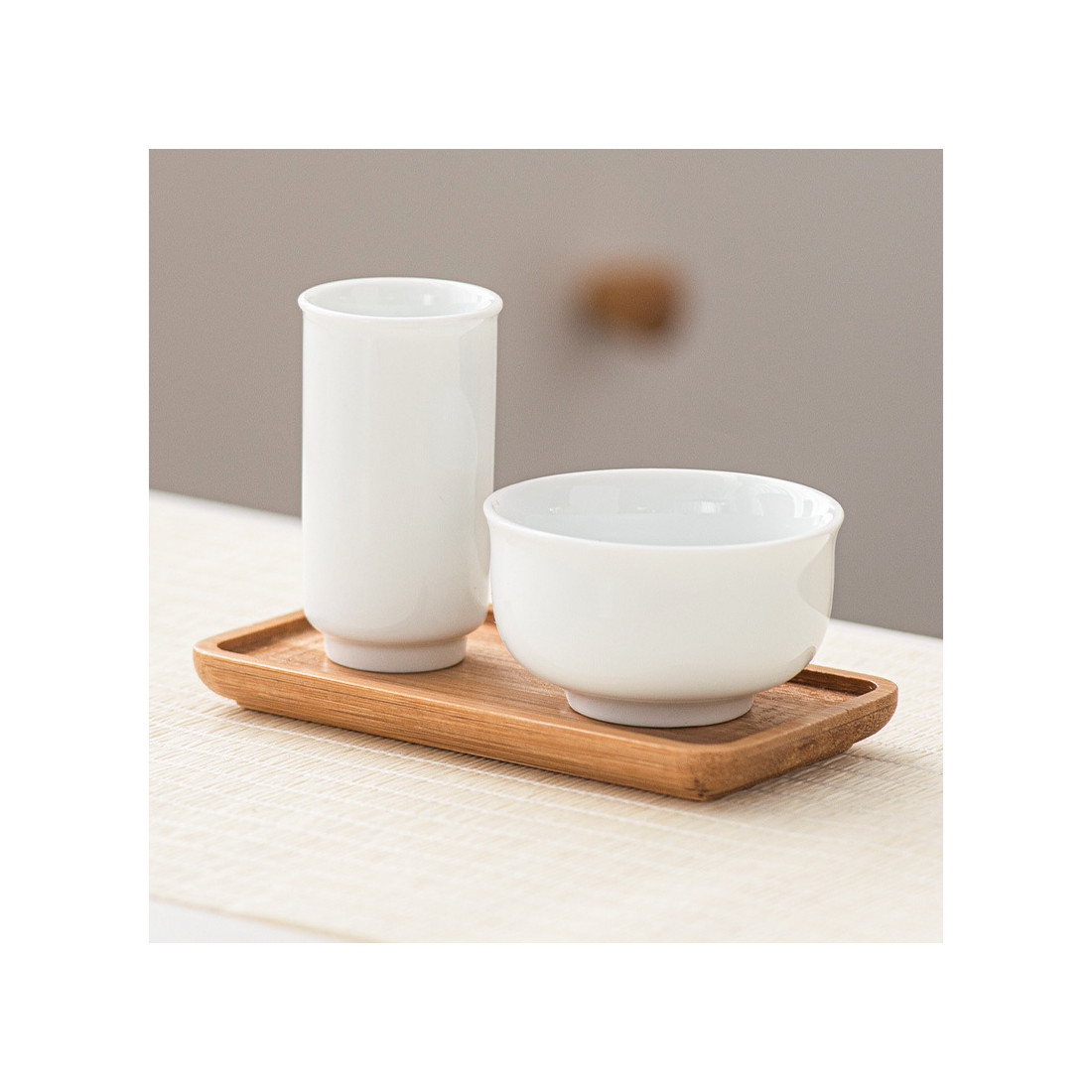 Чайні пари для порцеляни класичного холодного відтінку. Комплект із трьох предметів: чаша для пиття, чаша для аромату та підставка.