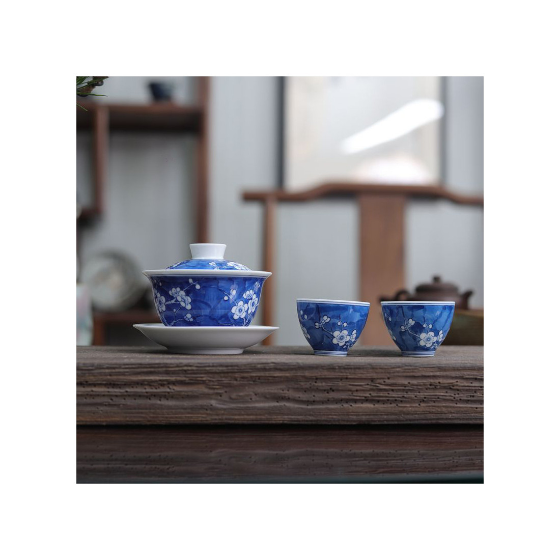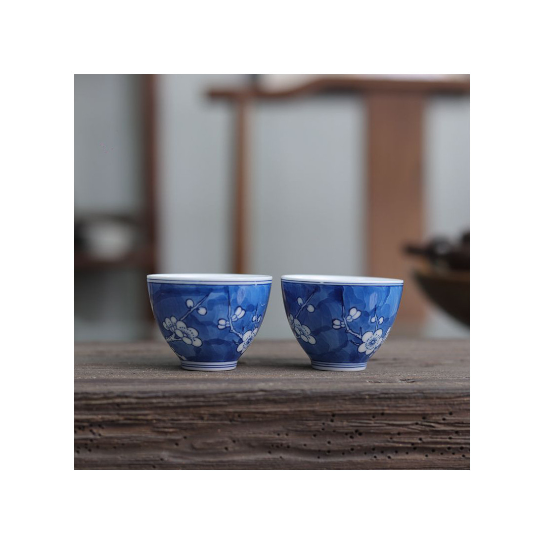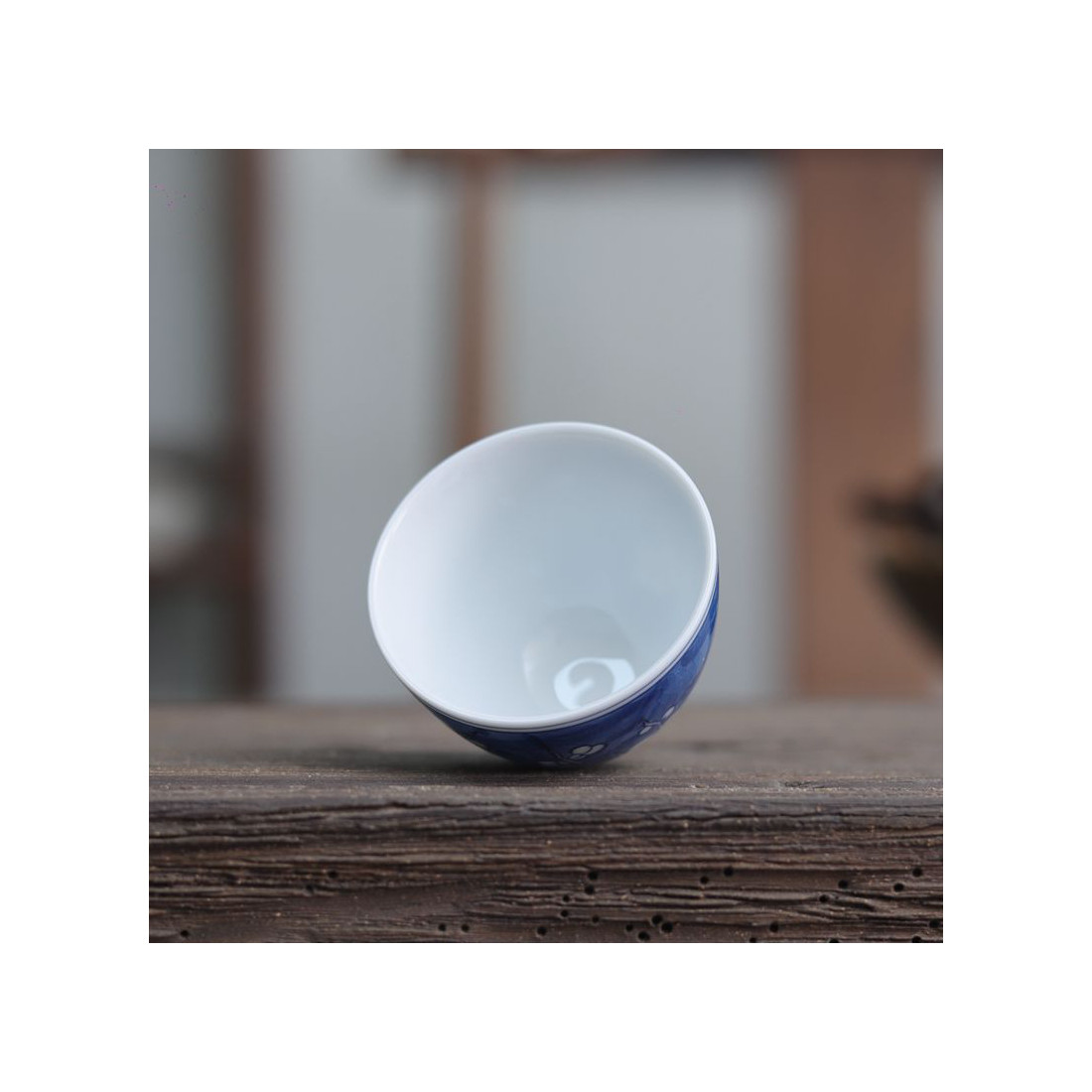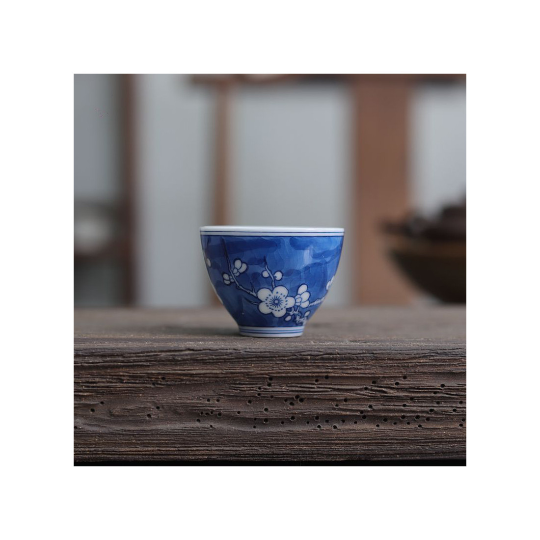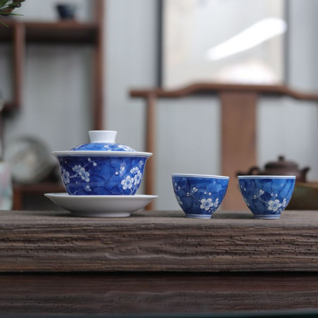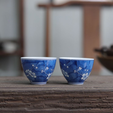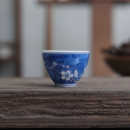 Порцелянова чаша із зображенням снігової сливи в морозний день.