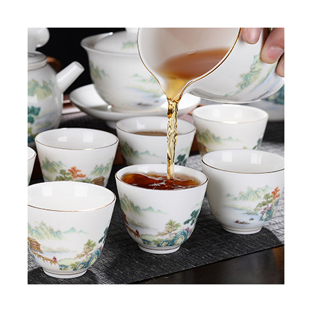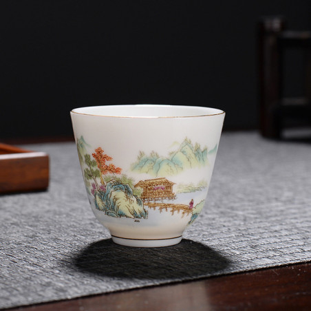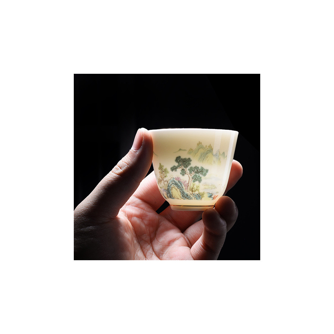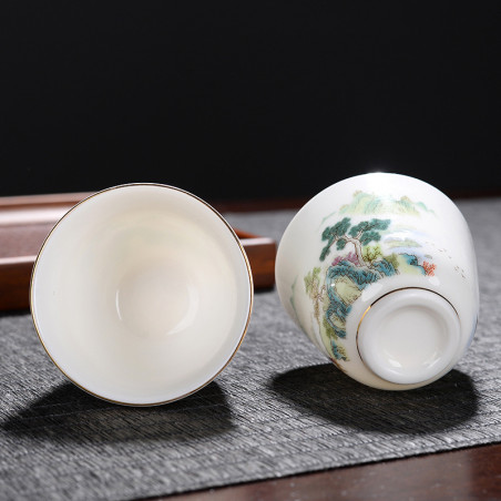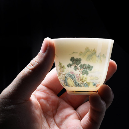 Чаша з пейзажем з фарфору кольору білого нефриту